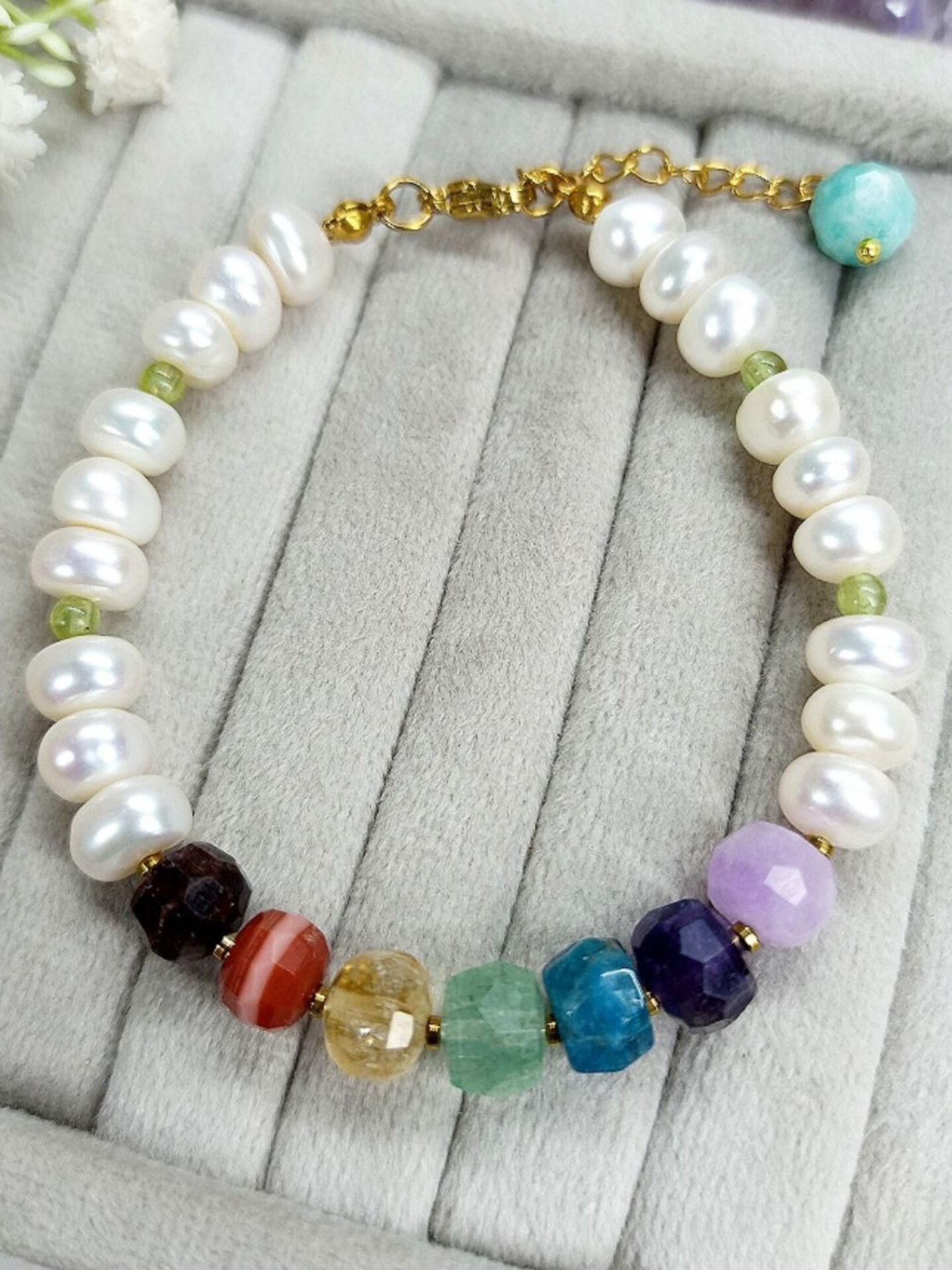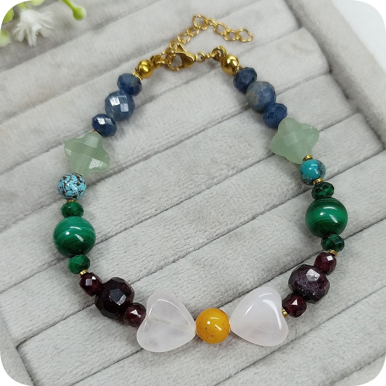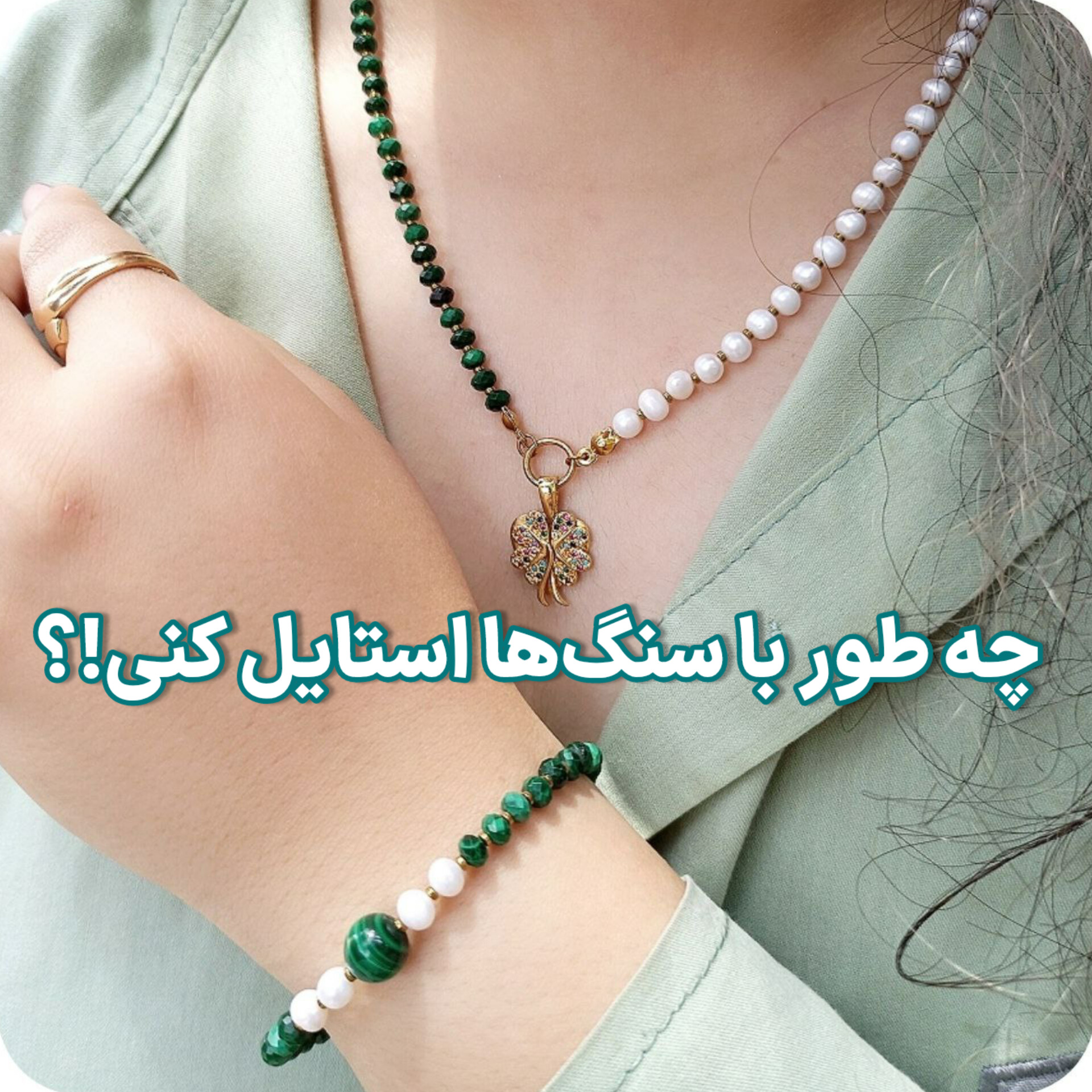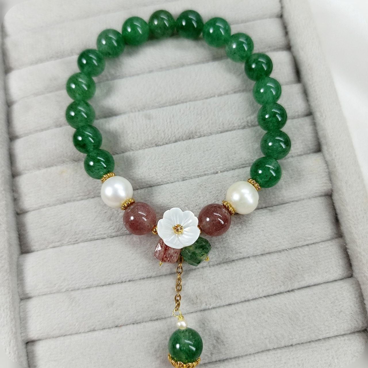 دستبند پینترستی کوارتز سبز و کوترتز توت فرنگی و مروارید