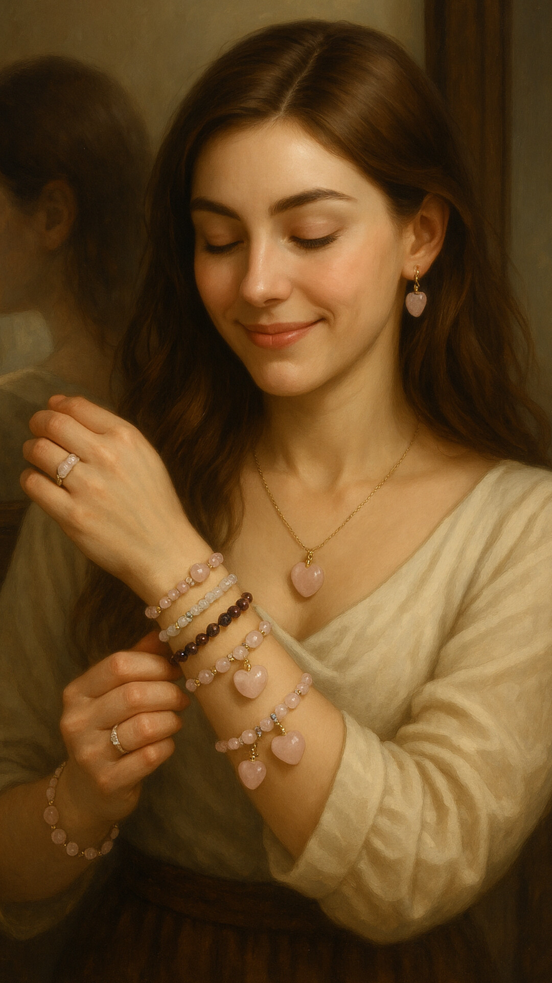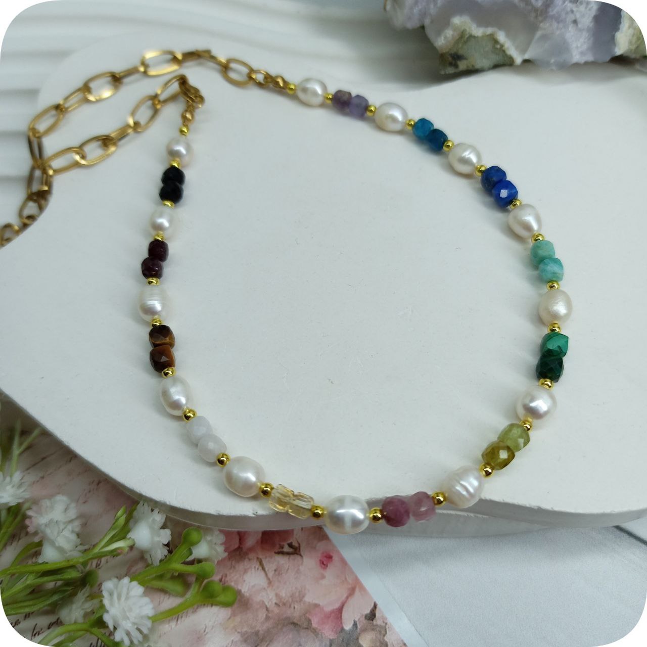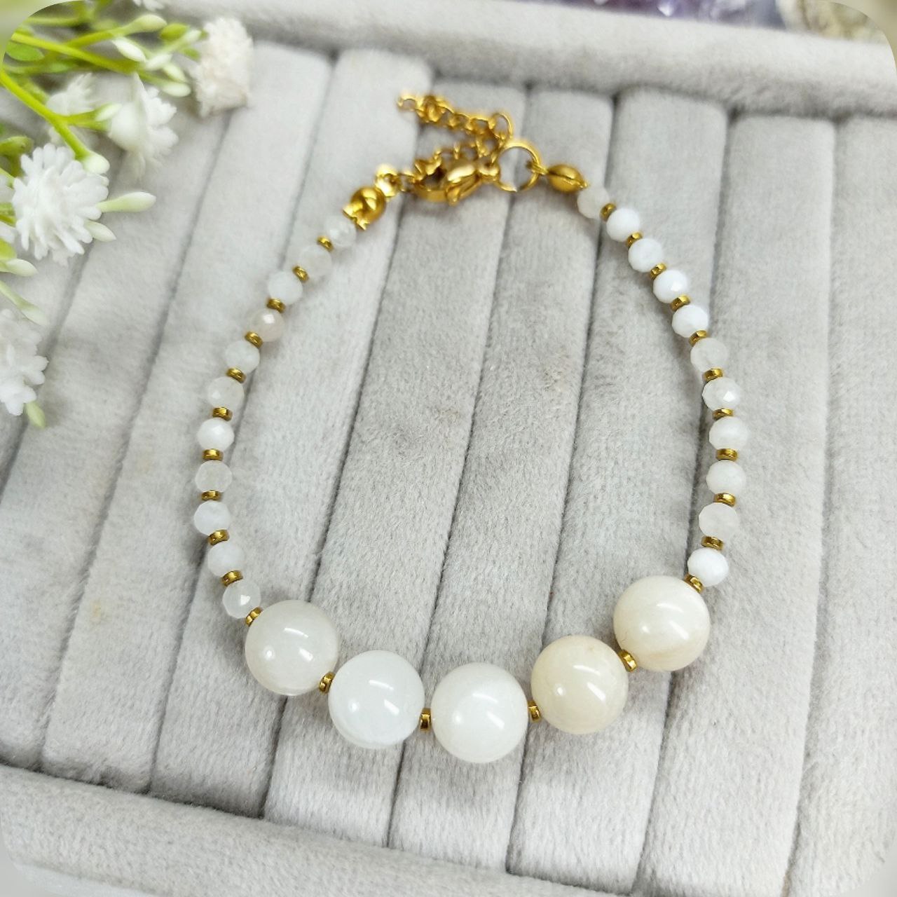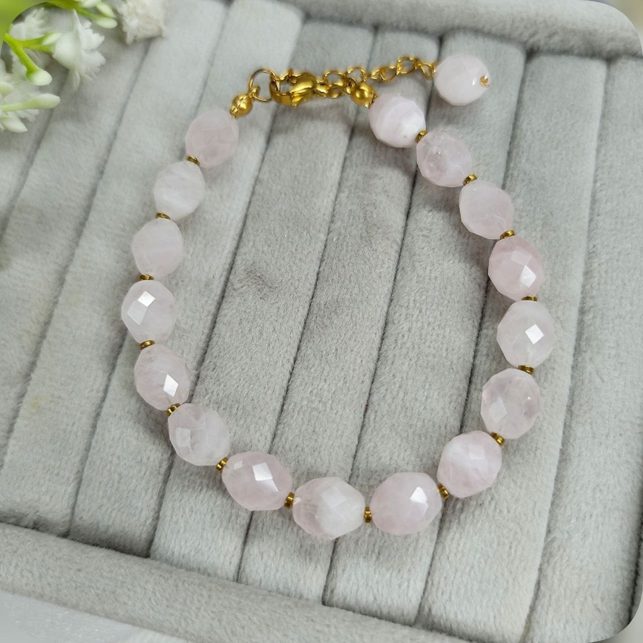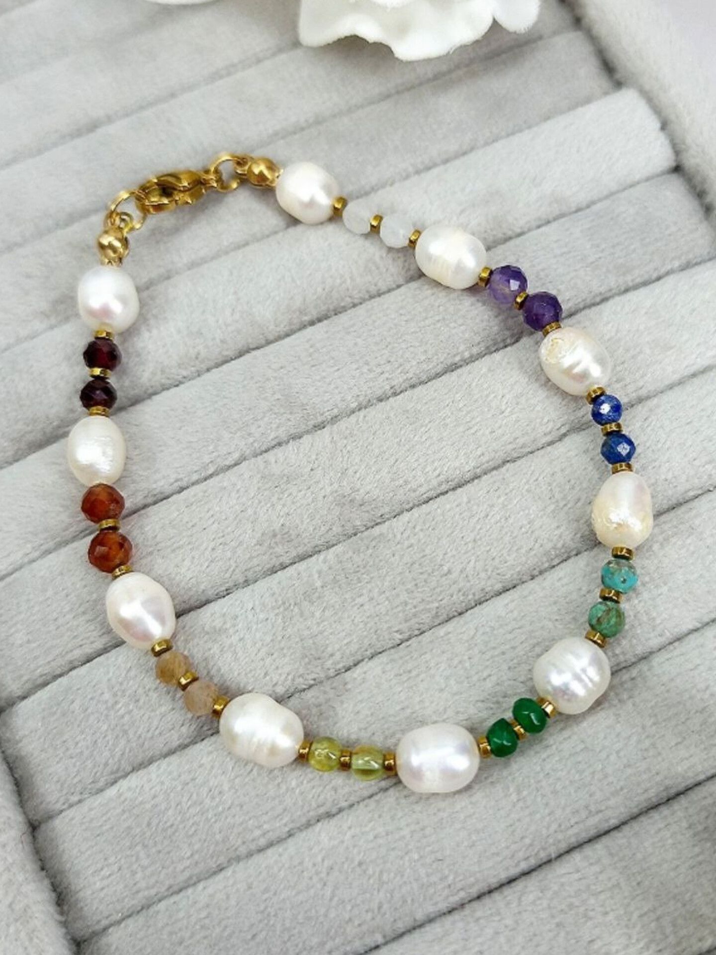 دستبند پینترستی کوارتز سبز و کوترتز توت فرنگی و مروارید