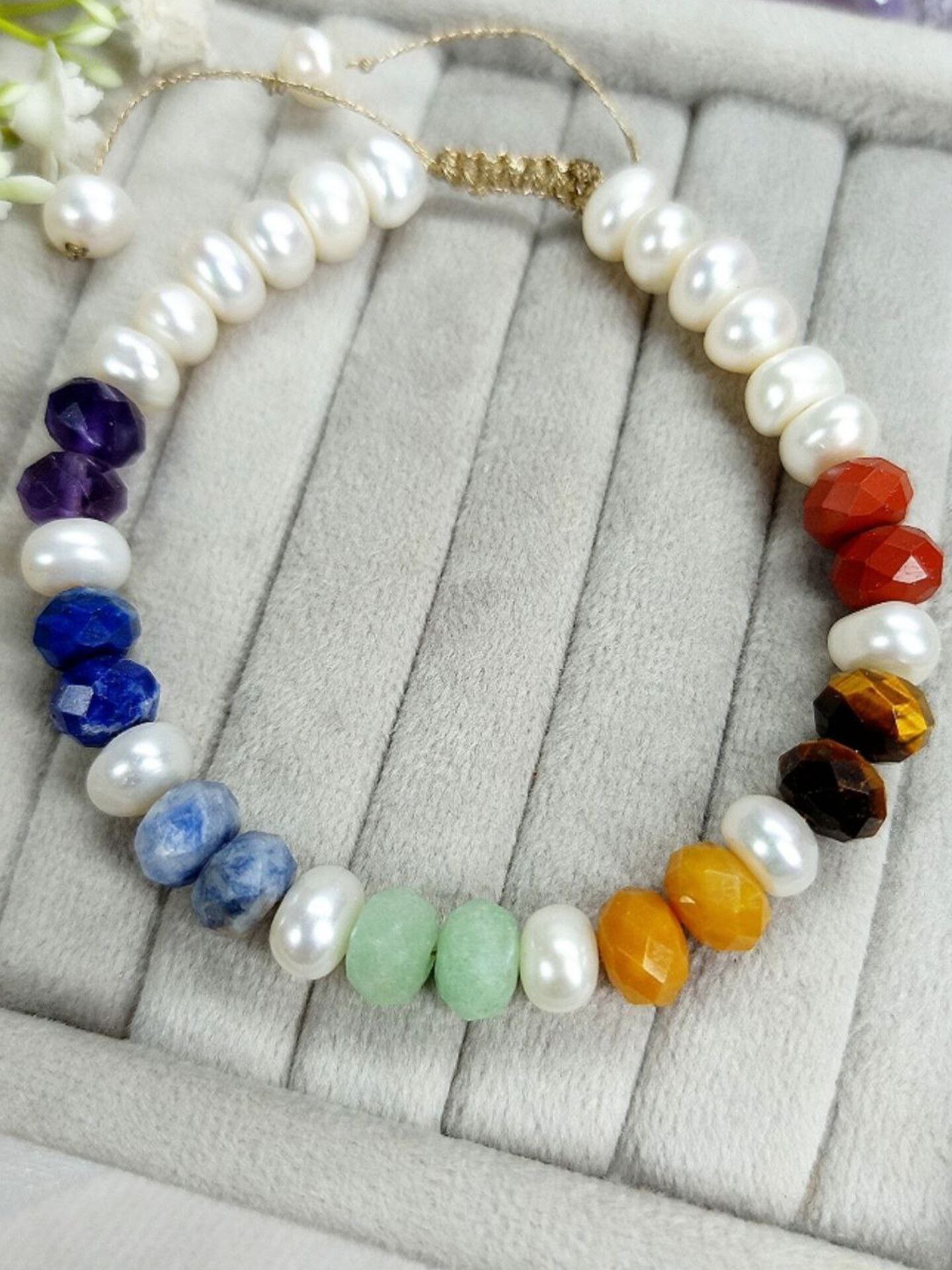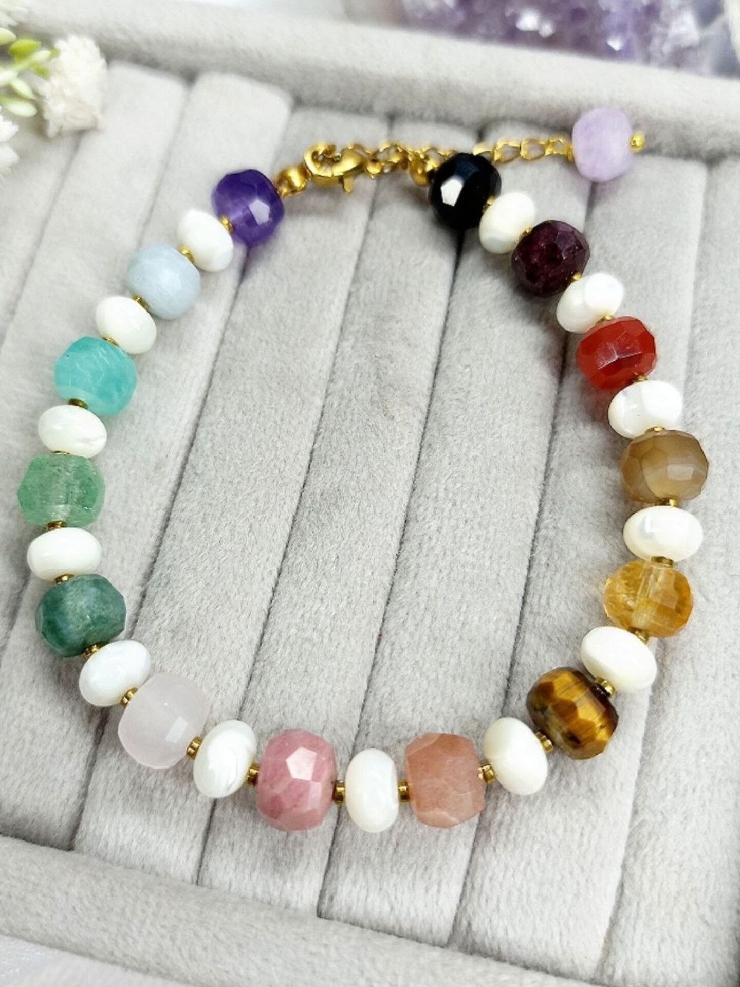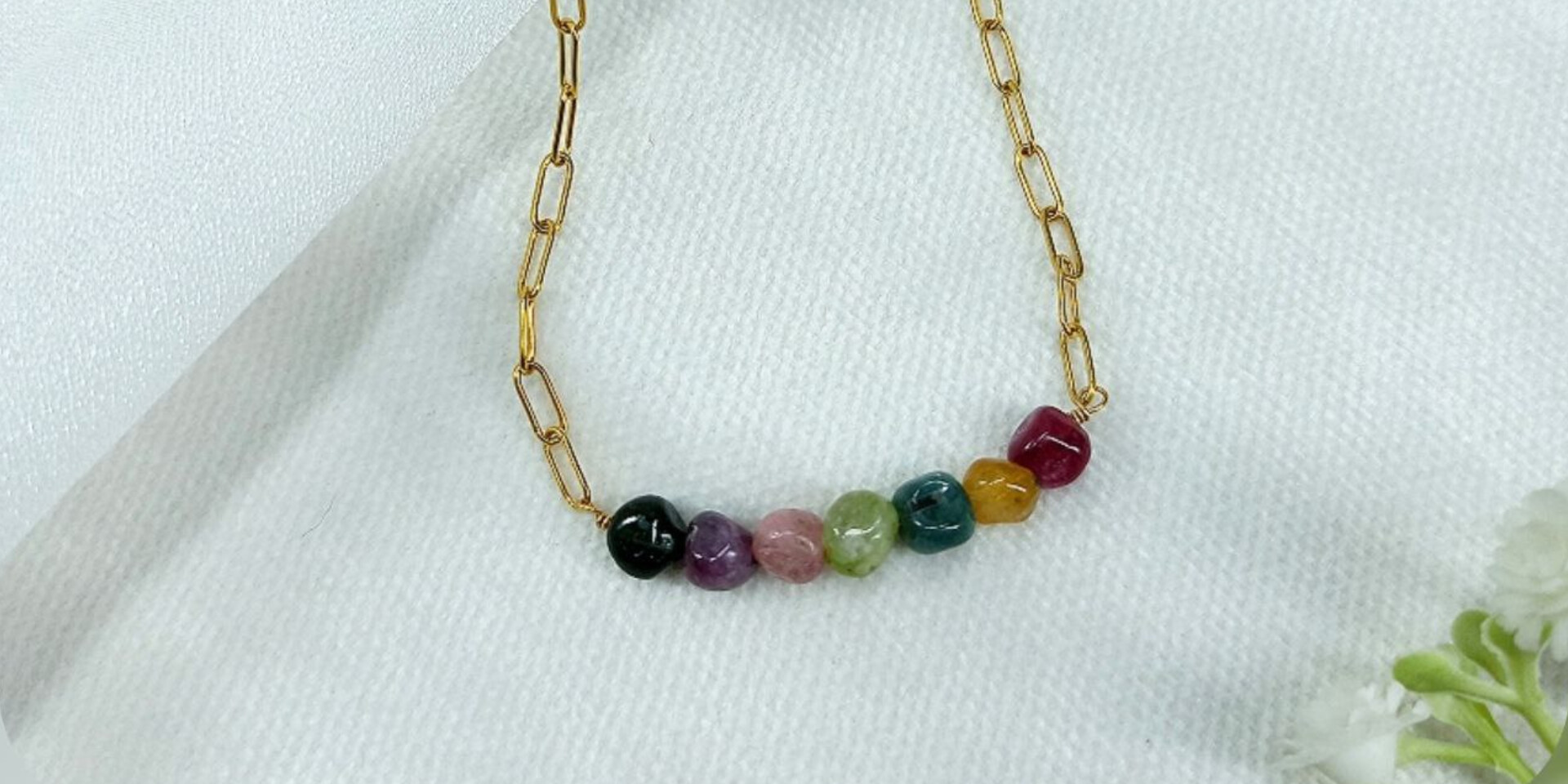 دستبند جواهری تورمالین هندوانه ای هفت چاکرا