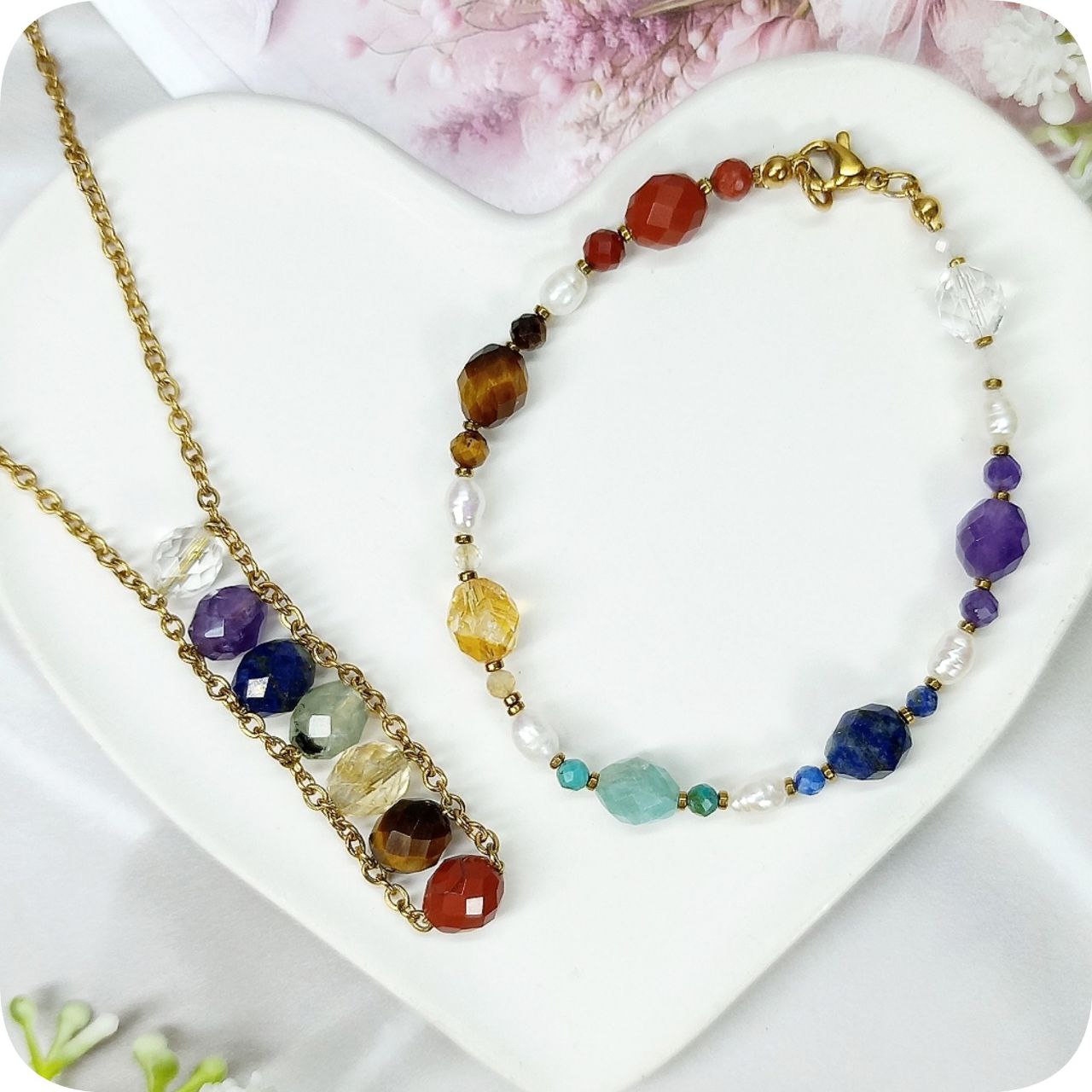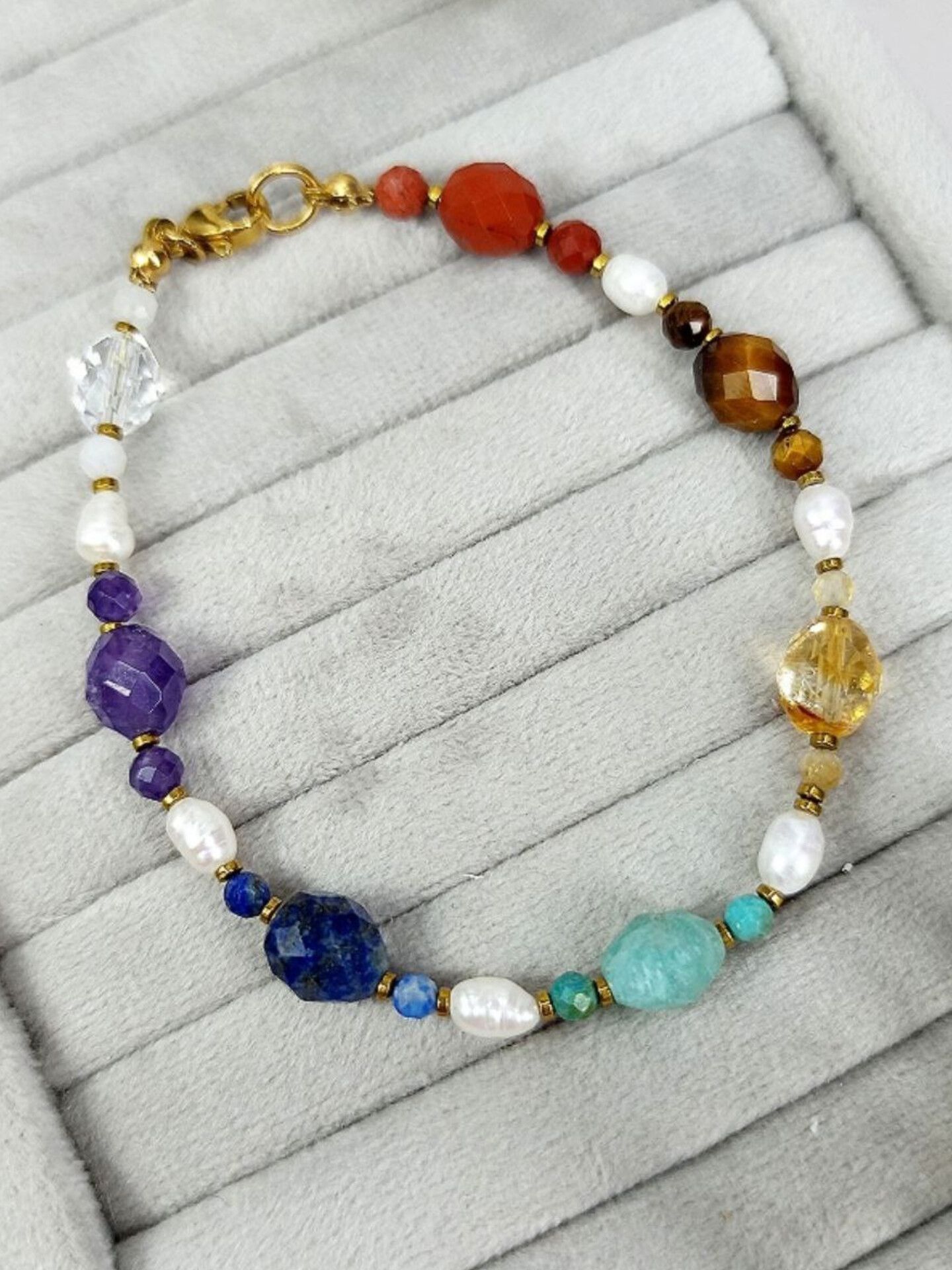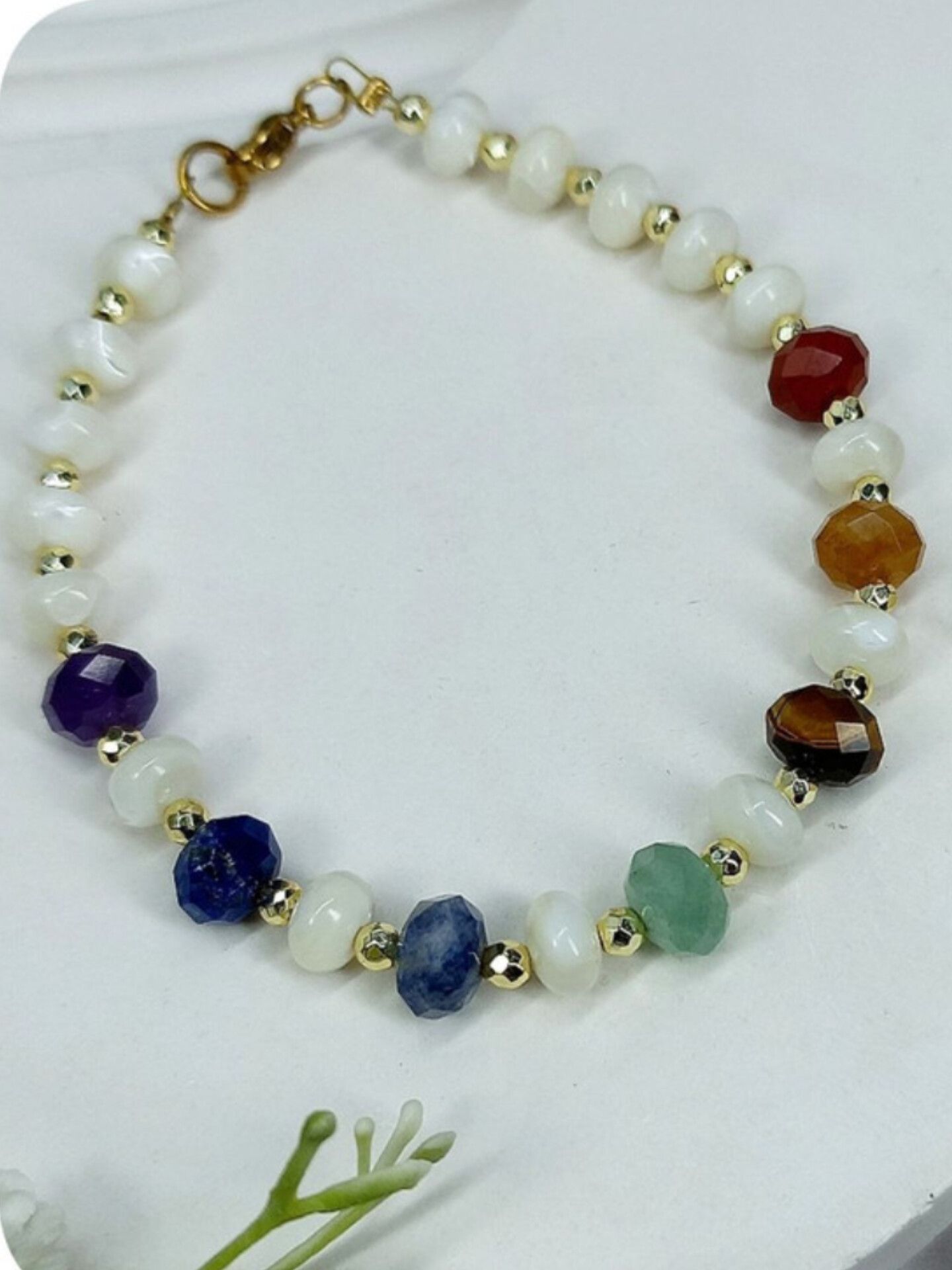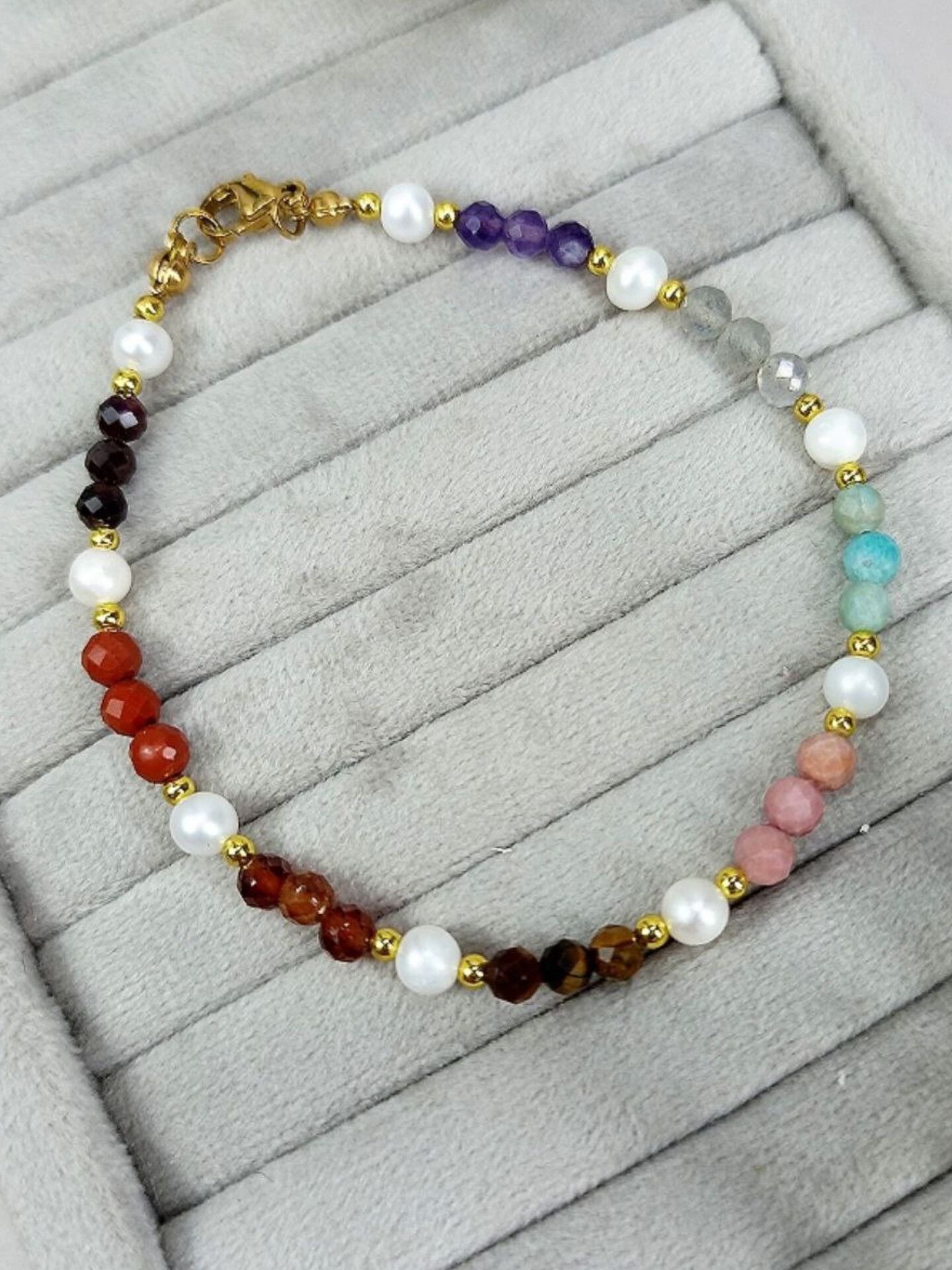 دستبند جواهری تورمالین هندوانه ای هفت چاکرا