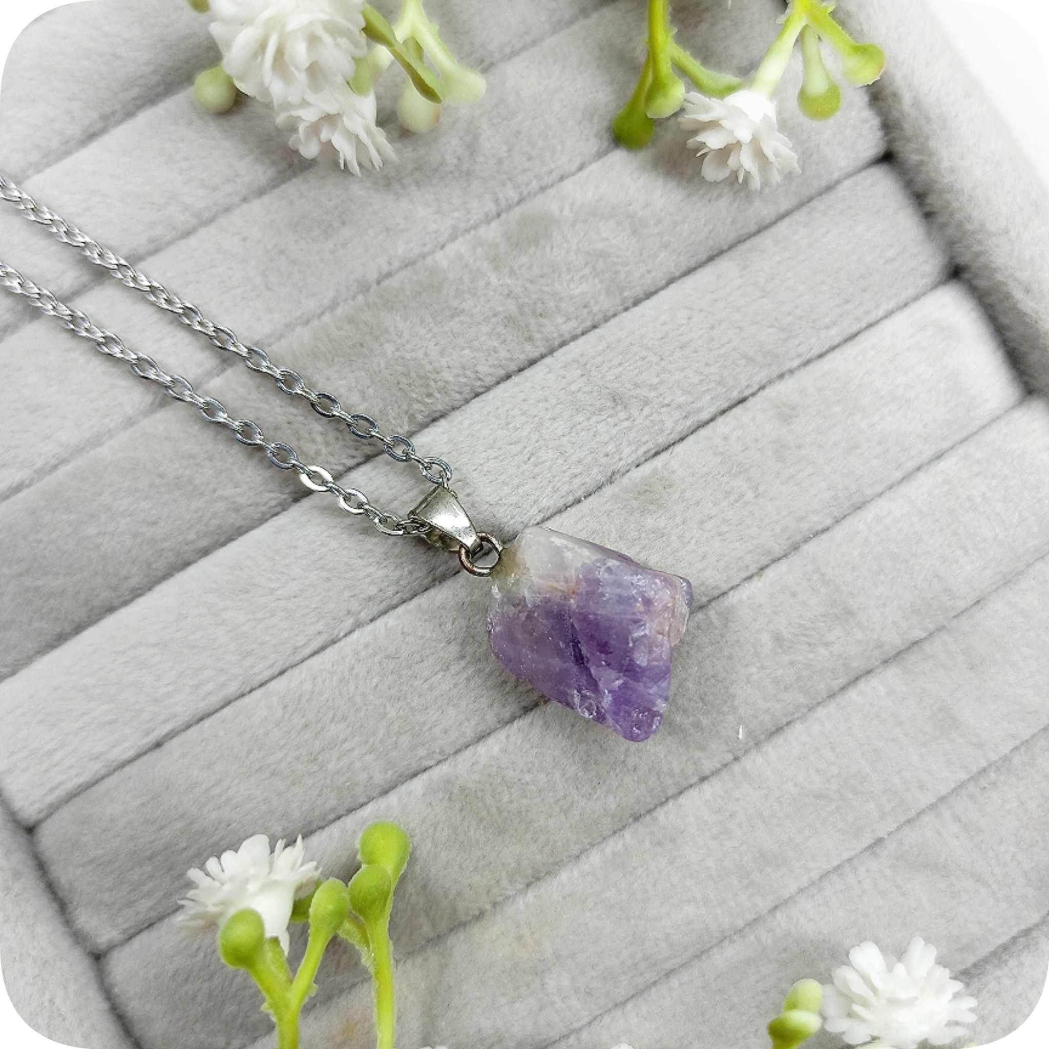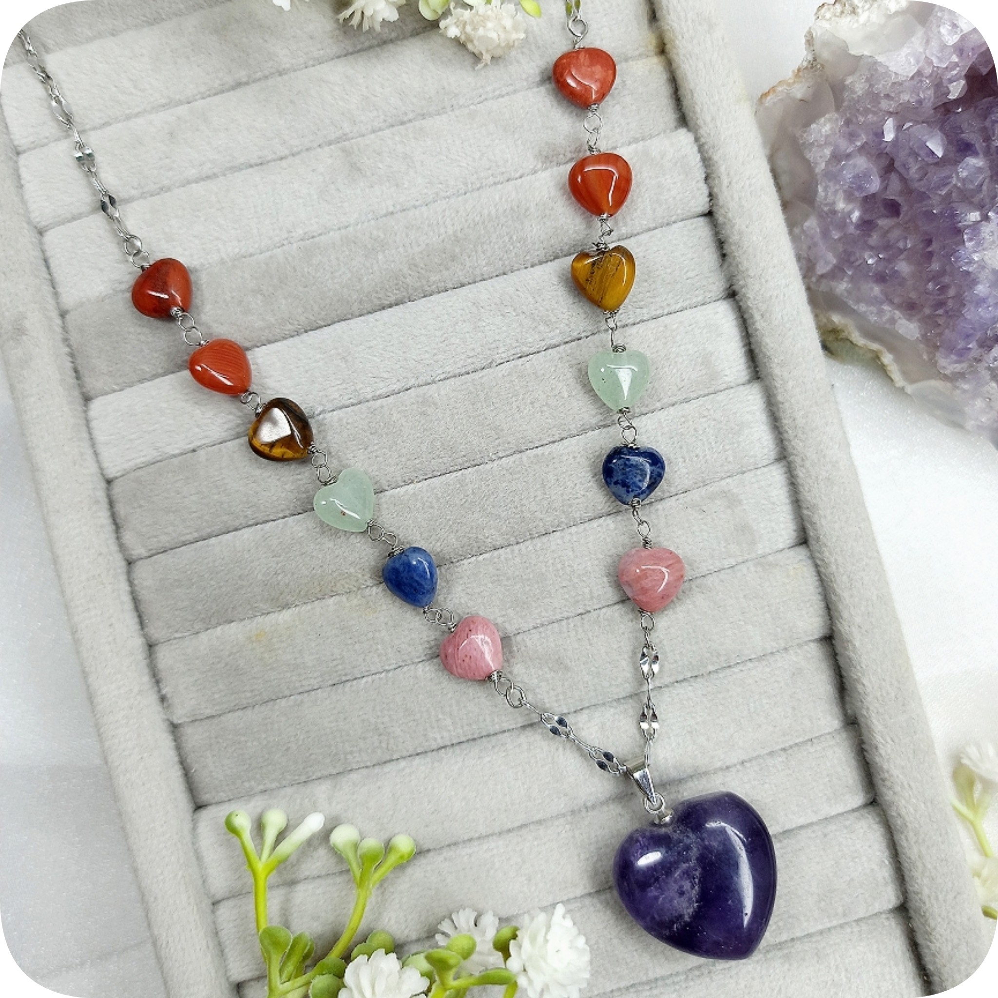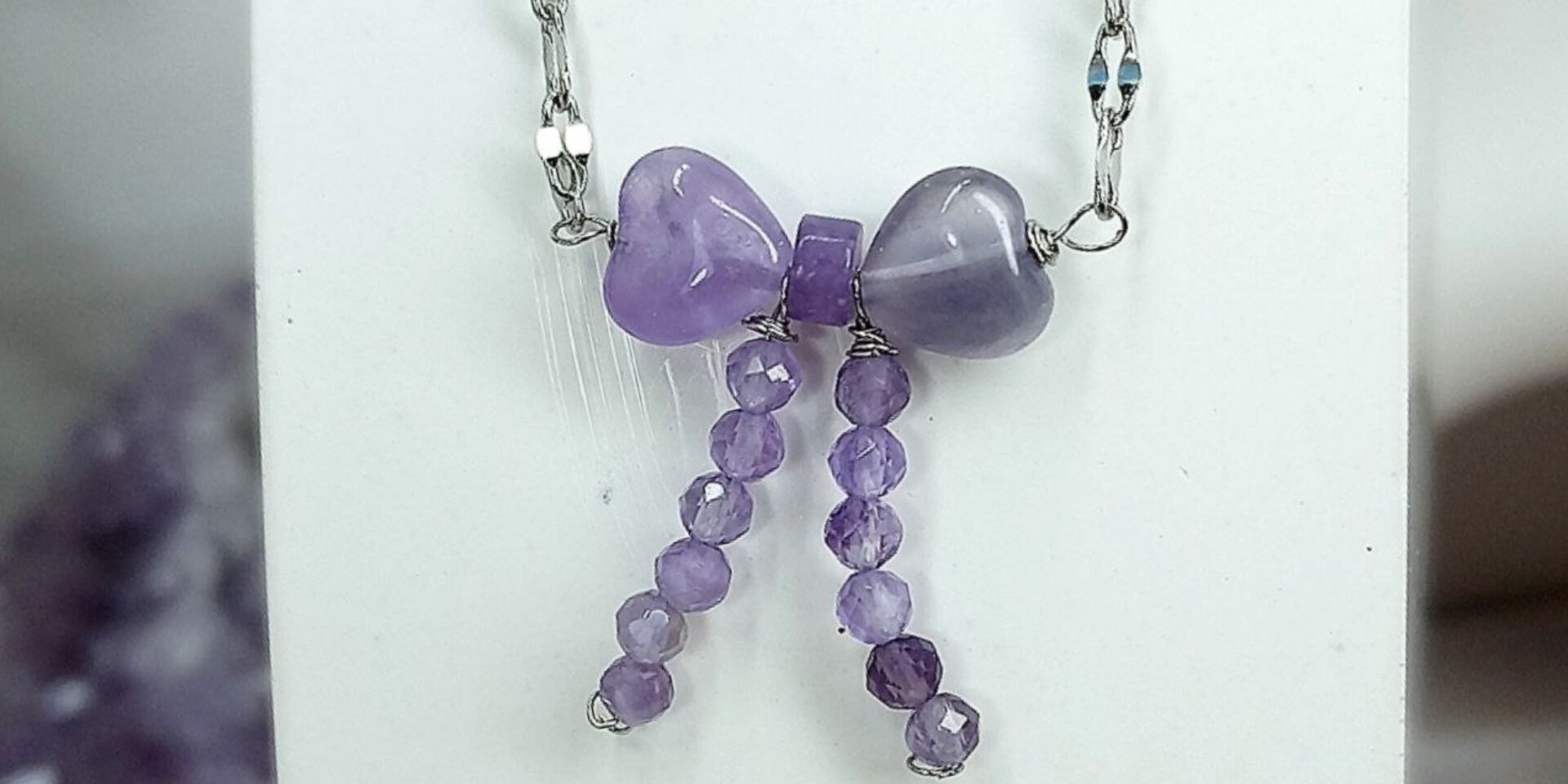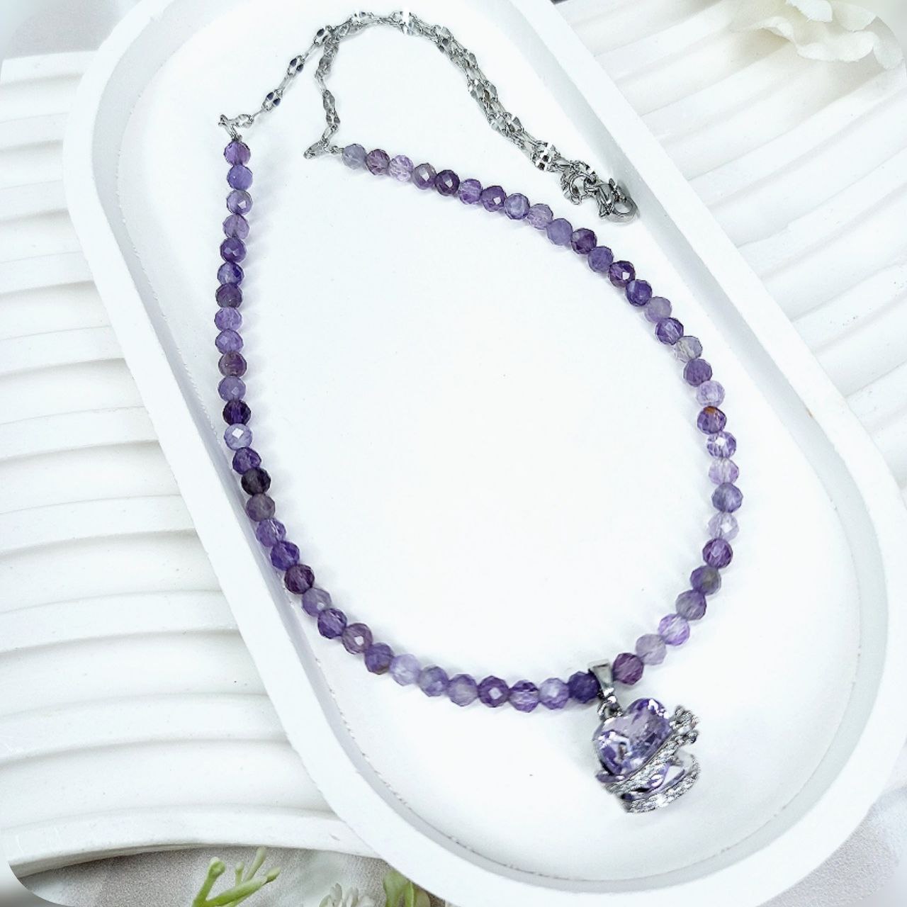 گردنبند آمیتیست تراش جواهری و قلب سواروسکی