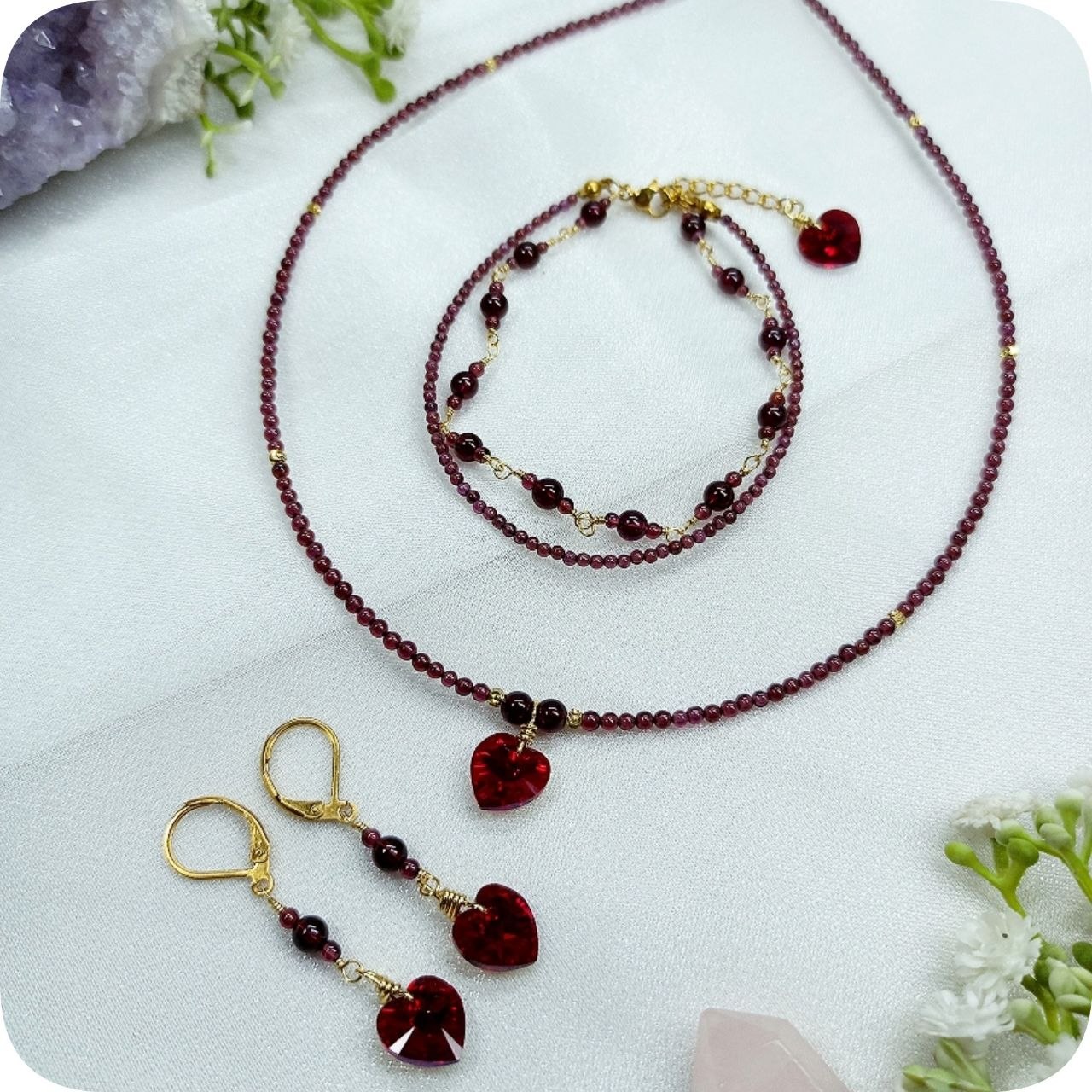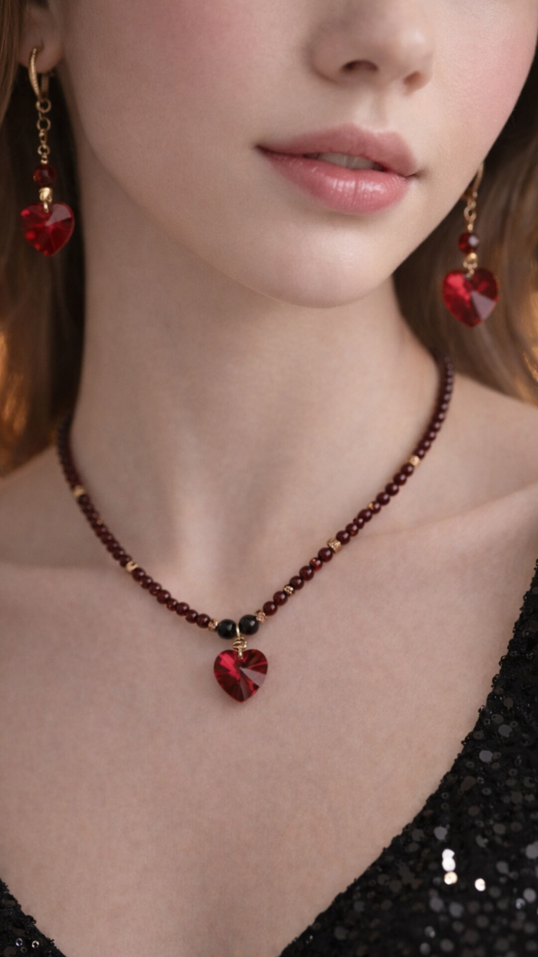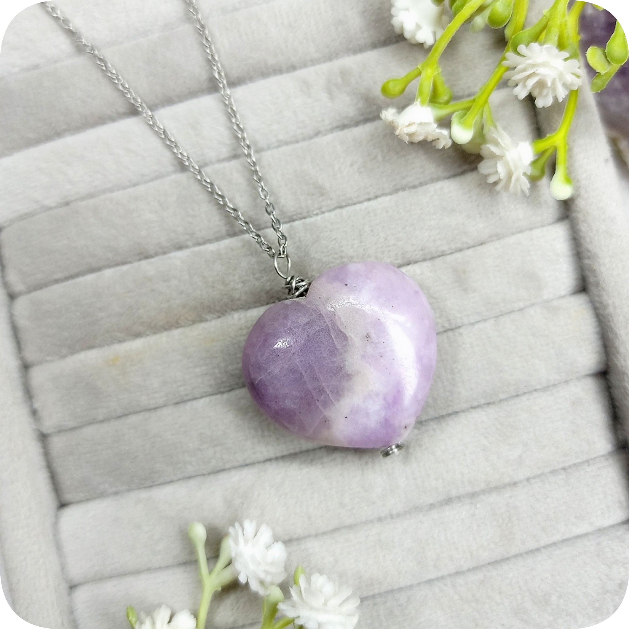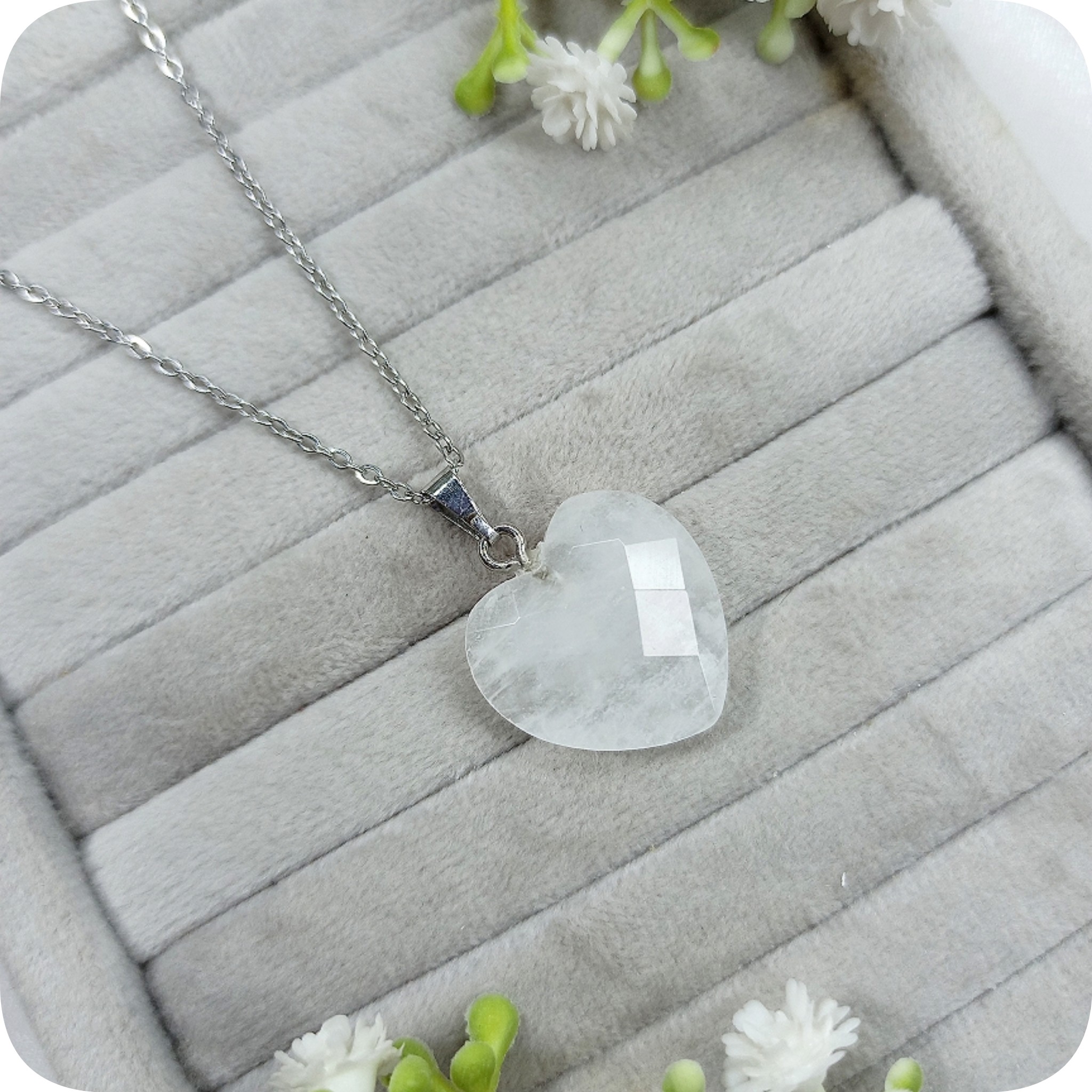 گردنبند آمیتیست تراش جواهری و قلب سواروسکی