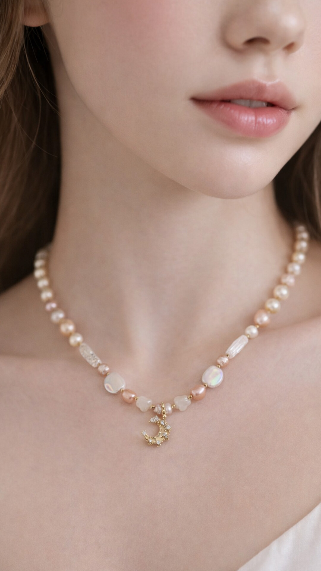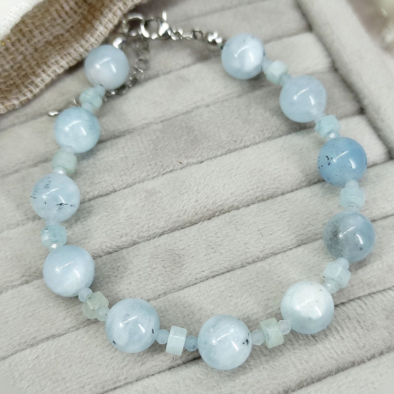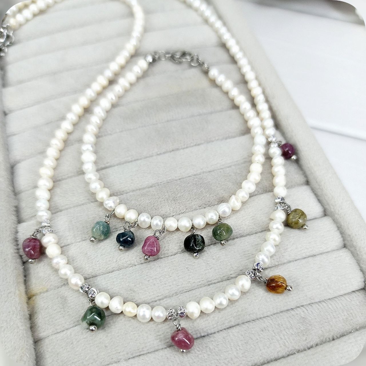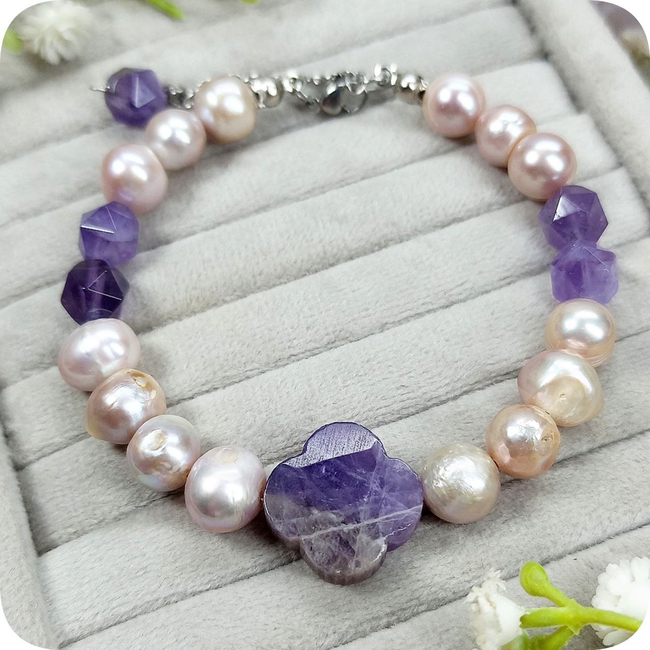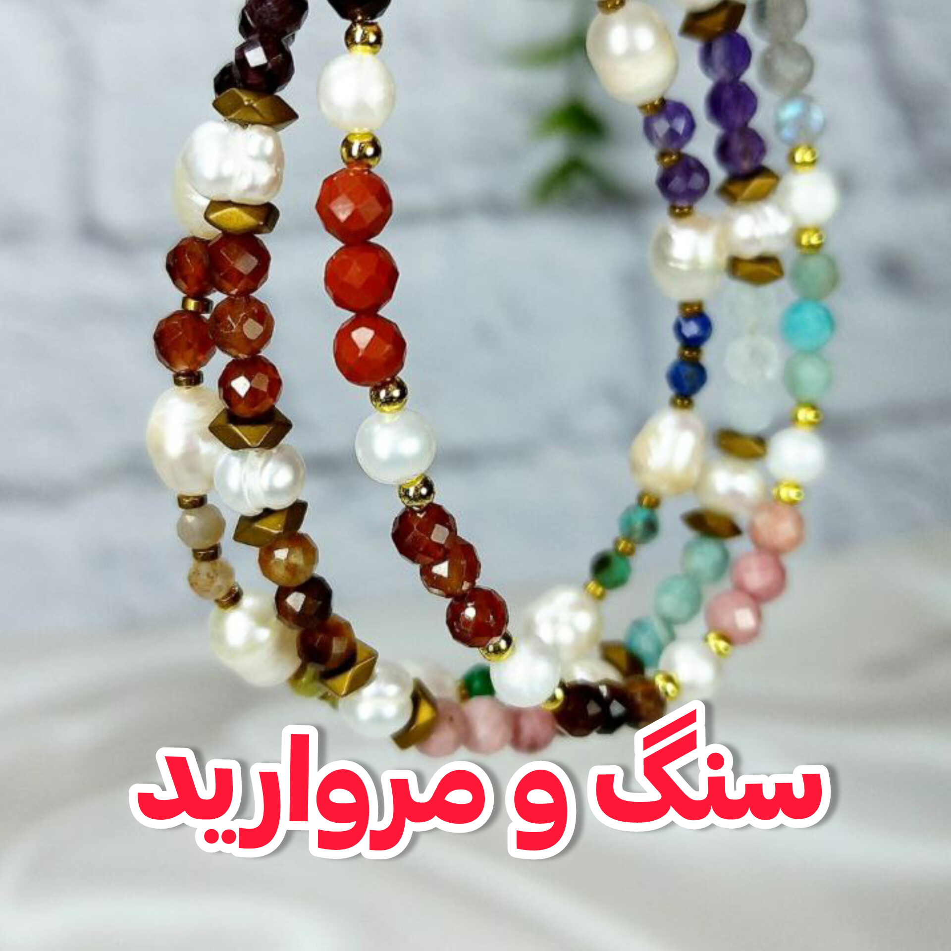دستبند کوارتز توت فرنگی و مروارید و آکوامارین