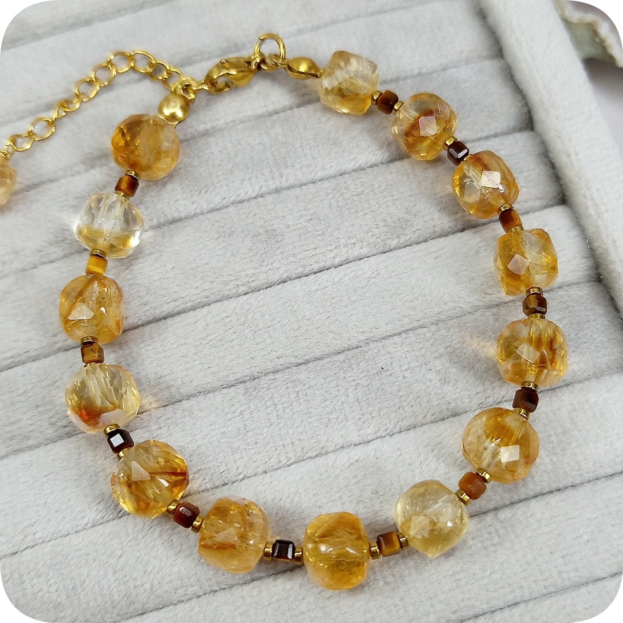 دستبند سیترین و چشم ببر تراش مکعبی (باکسی)