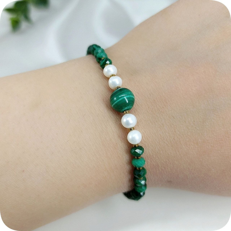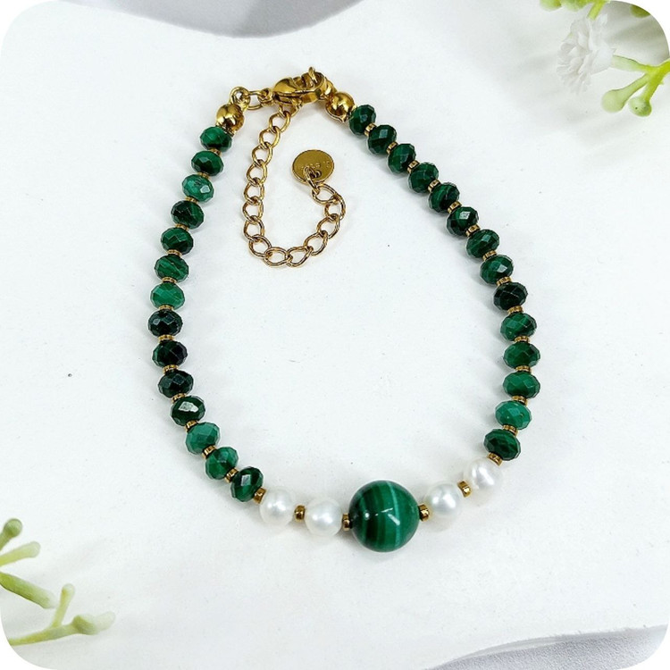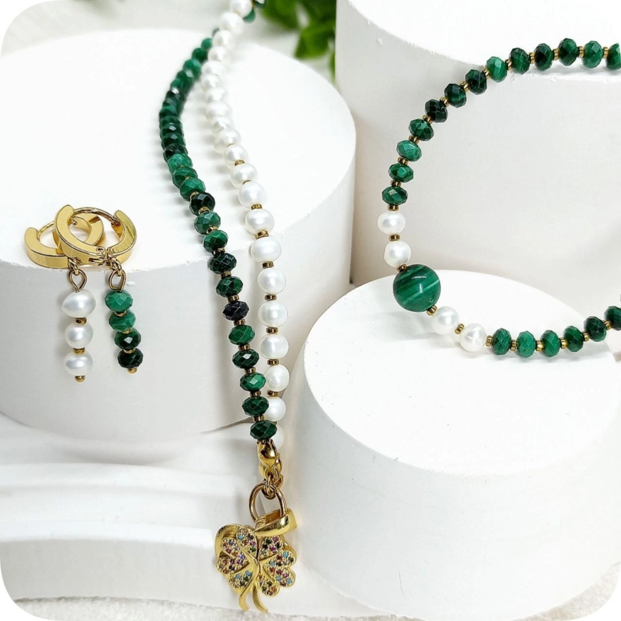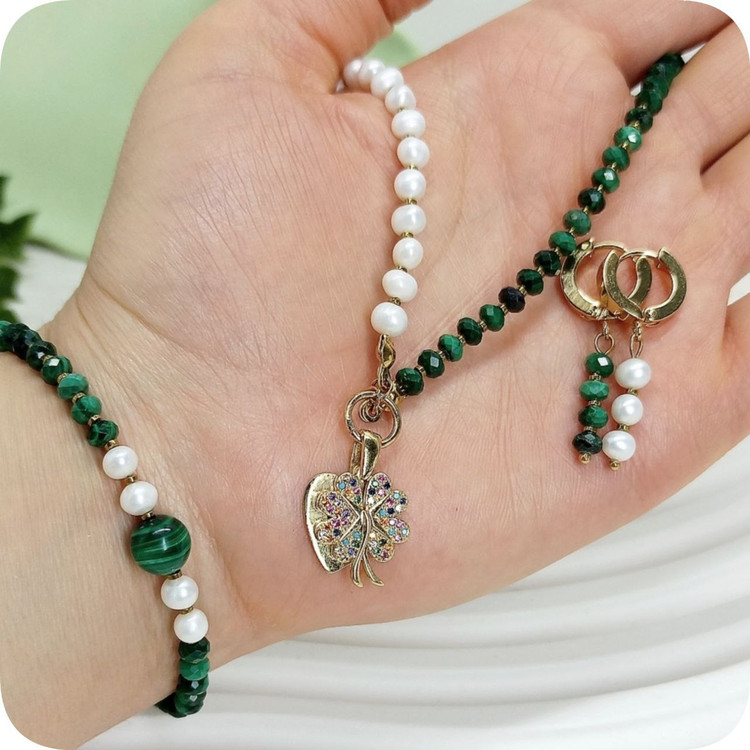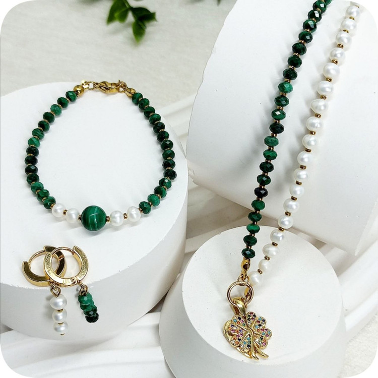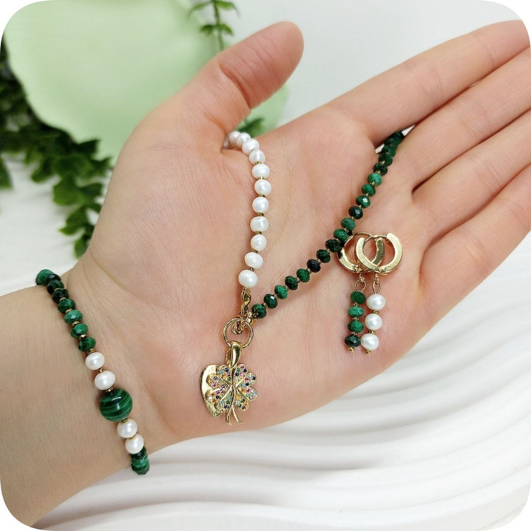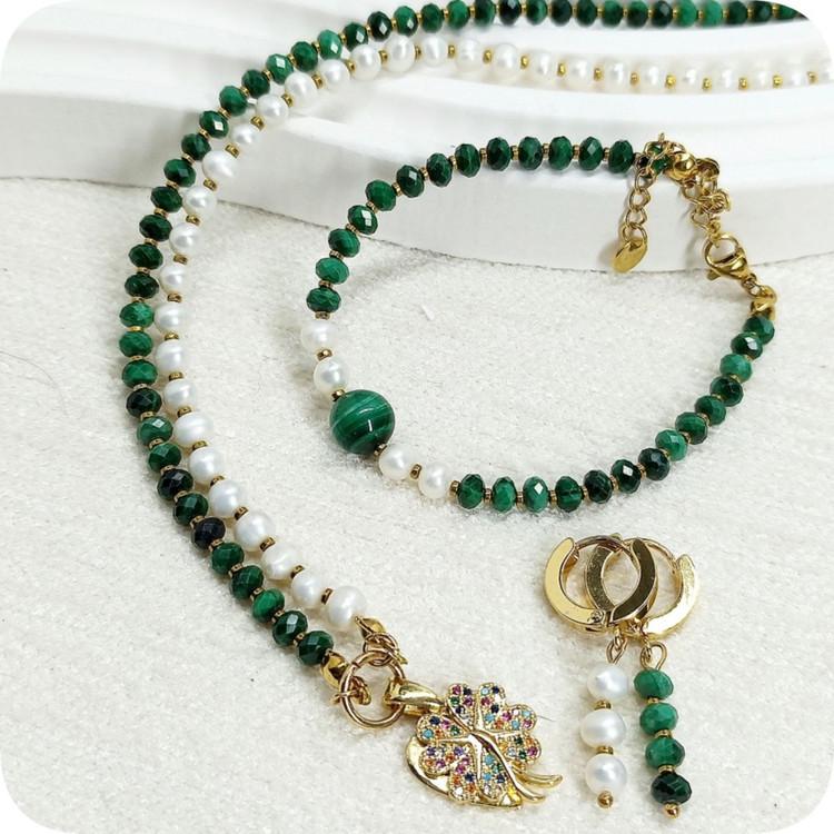 نیم ست مالاکیت تراش جواهری و مروارید