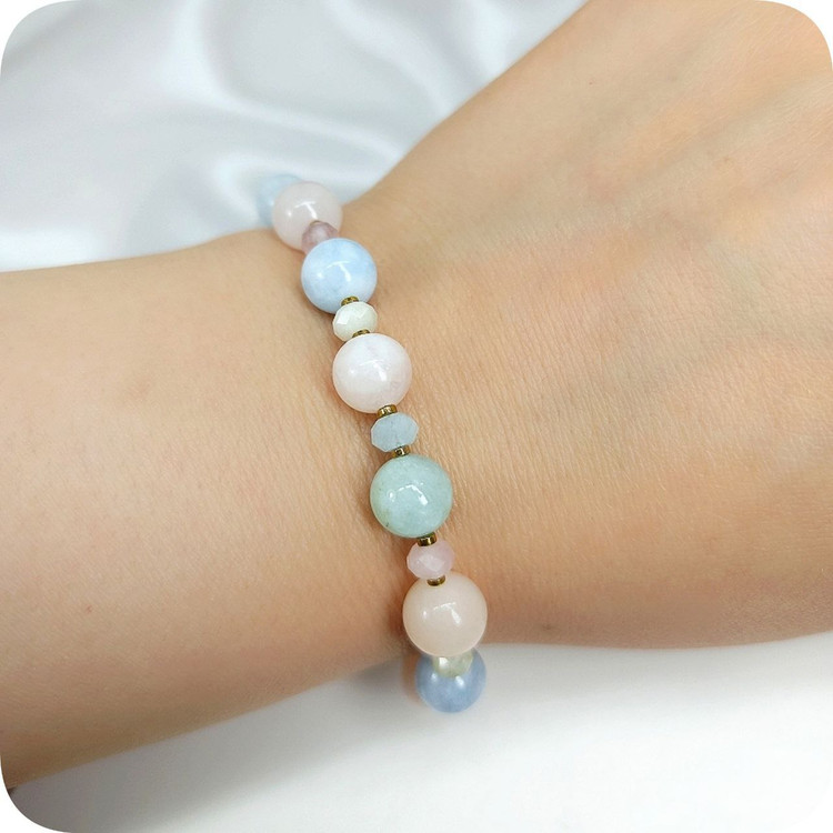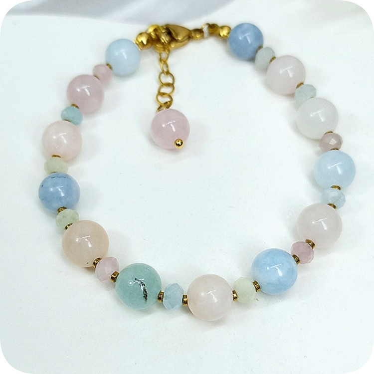 دستبند مورگانیت با تراش گرد و جواهری