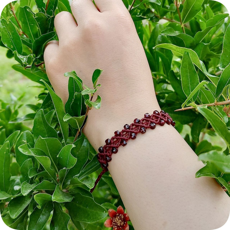 دستبند میکرومکرمه گارنت سرخ