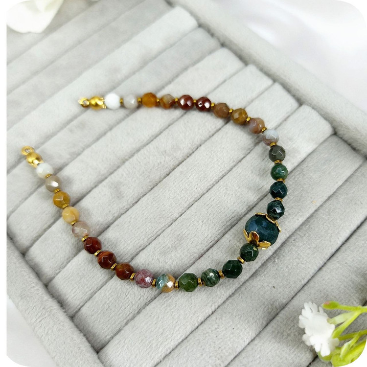 دستبند عقیق خزه ای تراش جواهری
