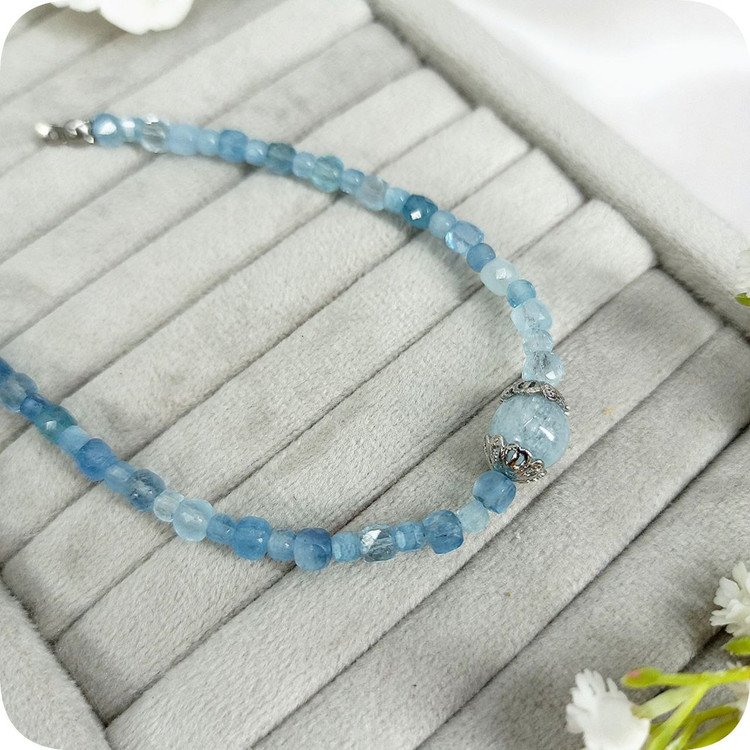 آکوامارین را میتوان با مون استون (سنگ ماه) برای آرامش بیشتر یا با آمازونیت برای تقویت بیان ترکیب کرد.