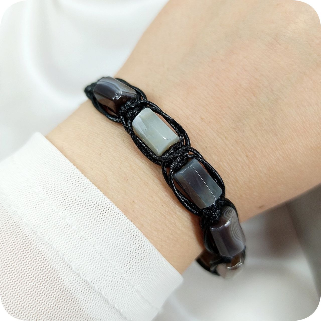 دستبند عقیق سلیمانی تراش لوله ای