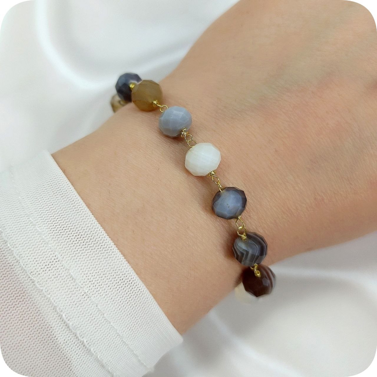 دستبند عقیق سلیمانی تراش واشری
