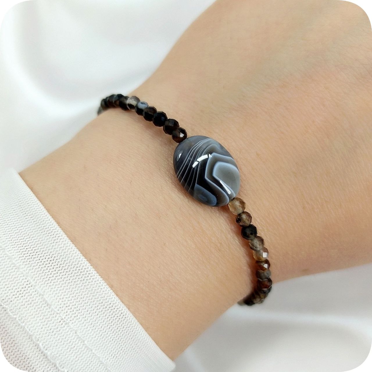 «فَروَهر یعنی روح نگهبان.» رگههای عقیق سلیمانی، نمادی از حفاظت و نور هستند. این زیور فقط یک دستبند نیست؛ یک نگهبان همراه است.