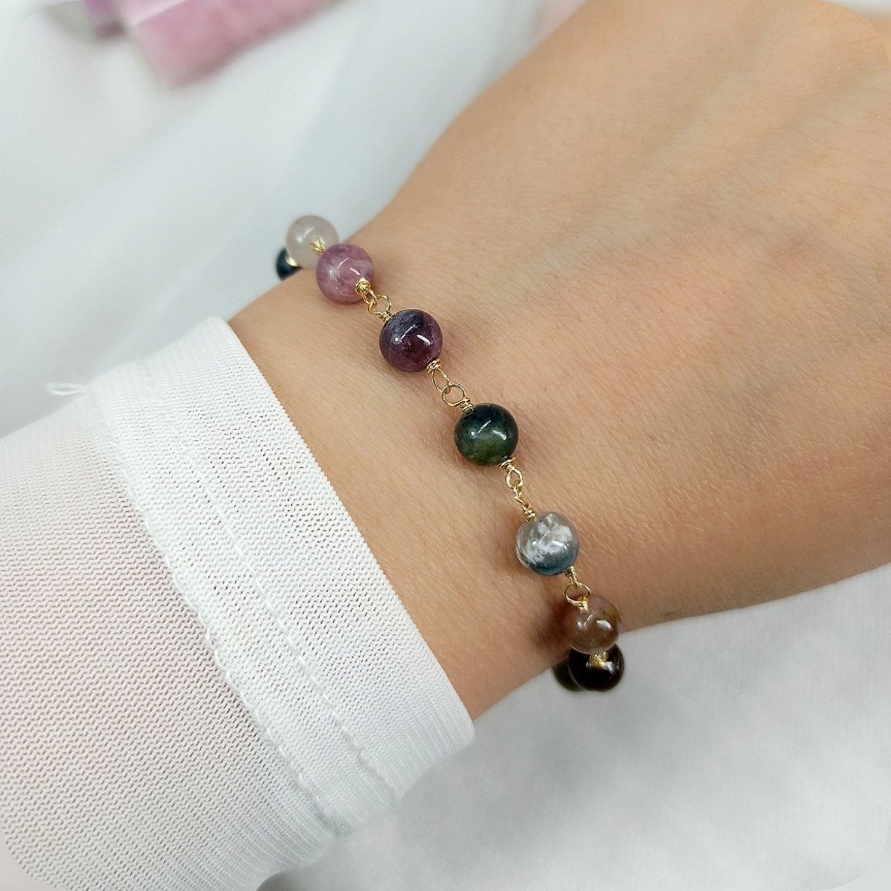 ترکیبی از انرژی و زیبایی دستبند تورمالین هندوانهای با تراش گرد؛ سنگی کمیاب با طیف رنگی چشمنواز که تعادل، آرامش و حس شادی را در کنار استایل لوکس شما کامل میکند.