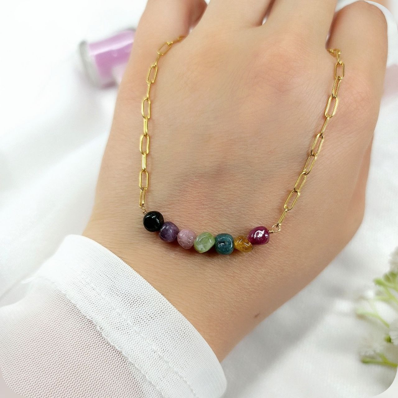 دستبند تورمالین هندوانهای با تراش گرد؛ سنگی کمیاب با طیف رنگی چشمنواز که تعادل، آرامش و حس شادی را در کنار استایل لوکس شما کامل میکند.