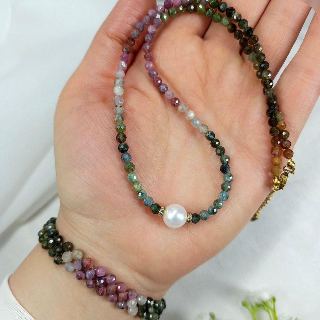 نیم ست تورمالین هندوانه ای تراش جواهری