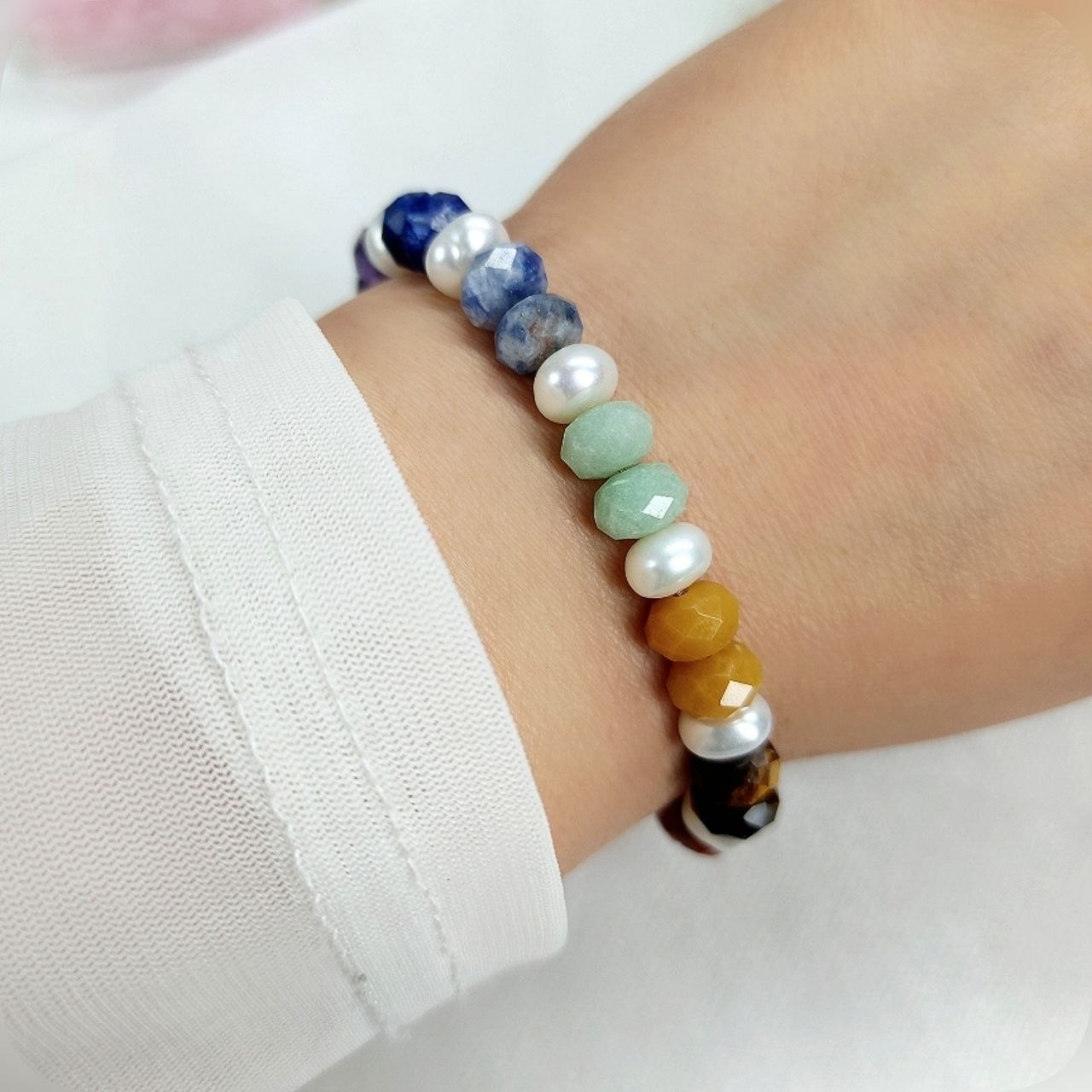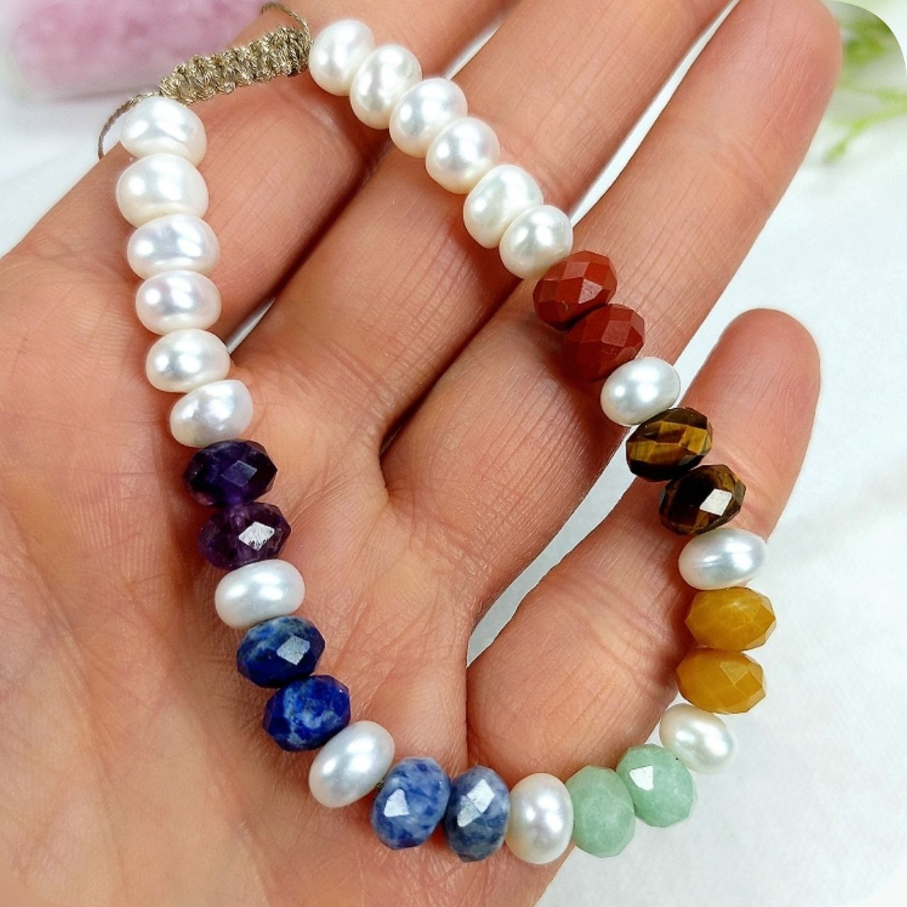 دستهبندی: کالکشن اقیانوس درونبرچسبها : دستبند زنانه، دستبند هفت چاکرا، دستبند مروارید و هفت چاکرا، دستبند مروارید و سنگ