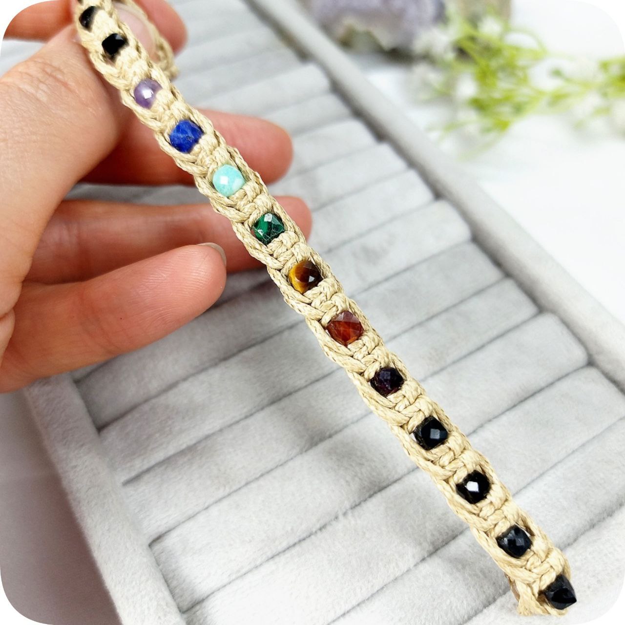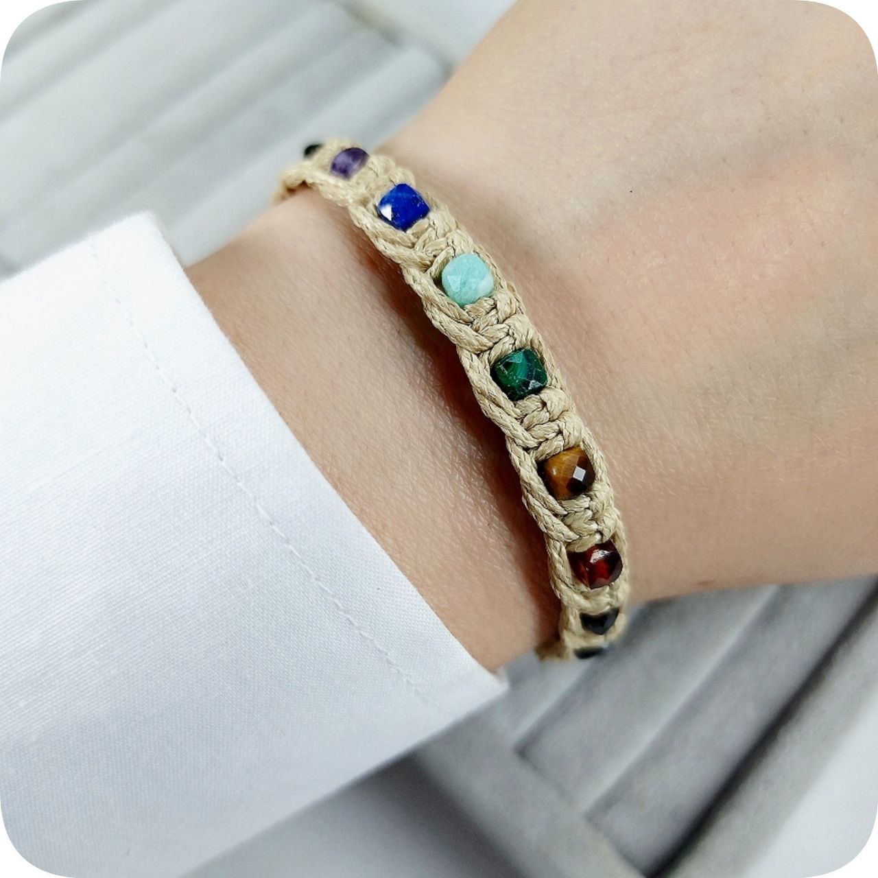 دستبند هفت چاکرا تراش مکعبی سایز ۴