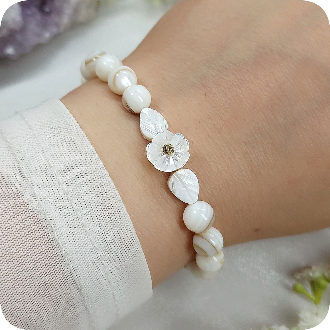 دستبند صدف و گل صدفی
