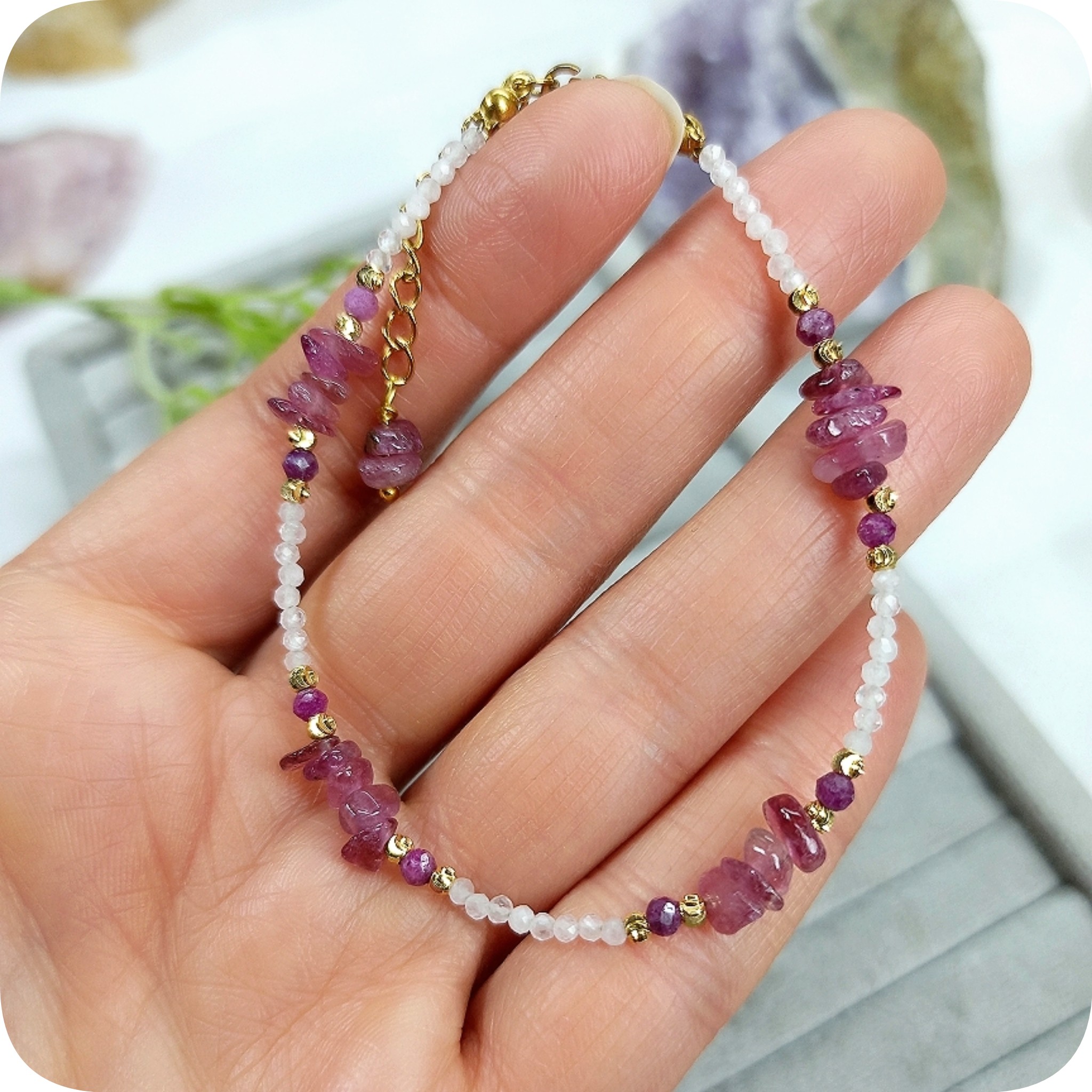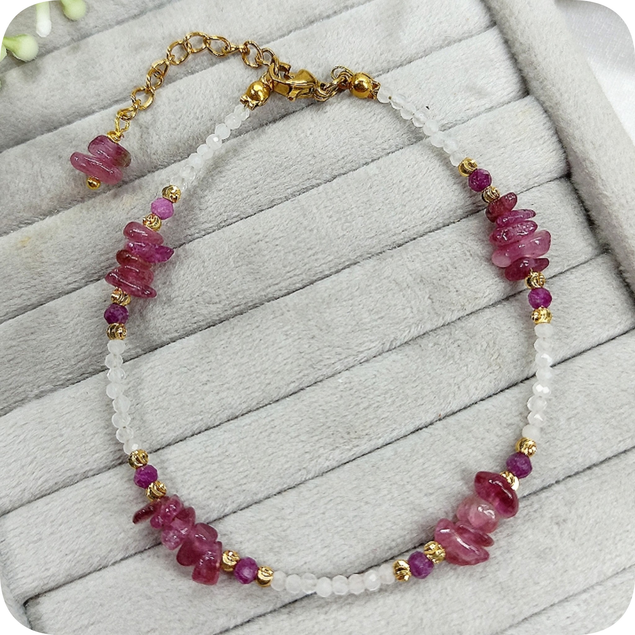 دستهبندی: کالکشن لطافتبرچسبها : دستبند تراش جواهری رزکوارتز، دستبند چیپسی تورمالین صورتی، کالکشن لطافت