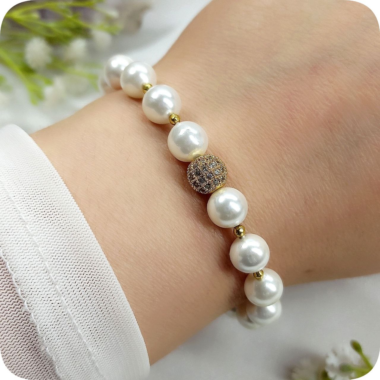 دستبند مروارید شل گوی سواروسکی