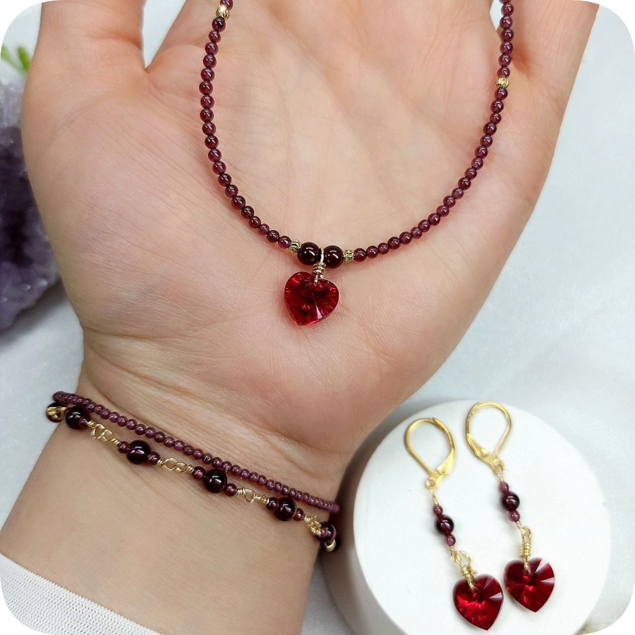 نیم ست گارنت و قلب سواروسکی