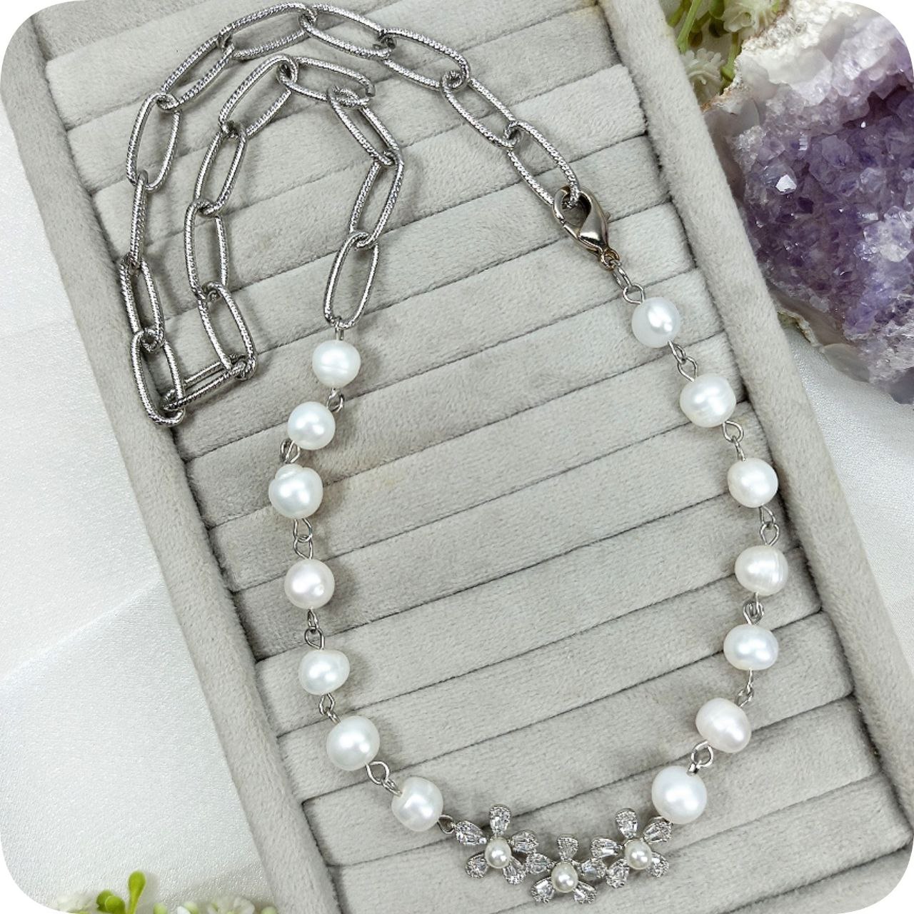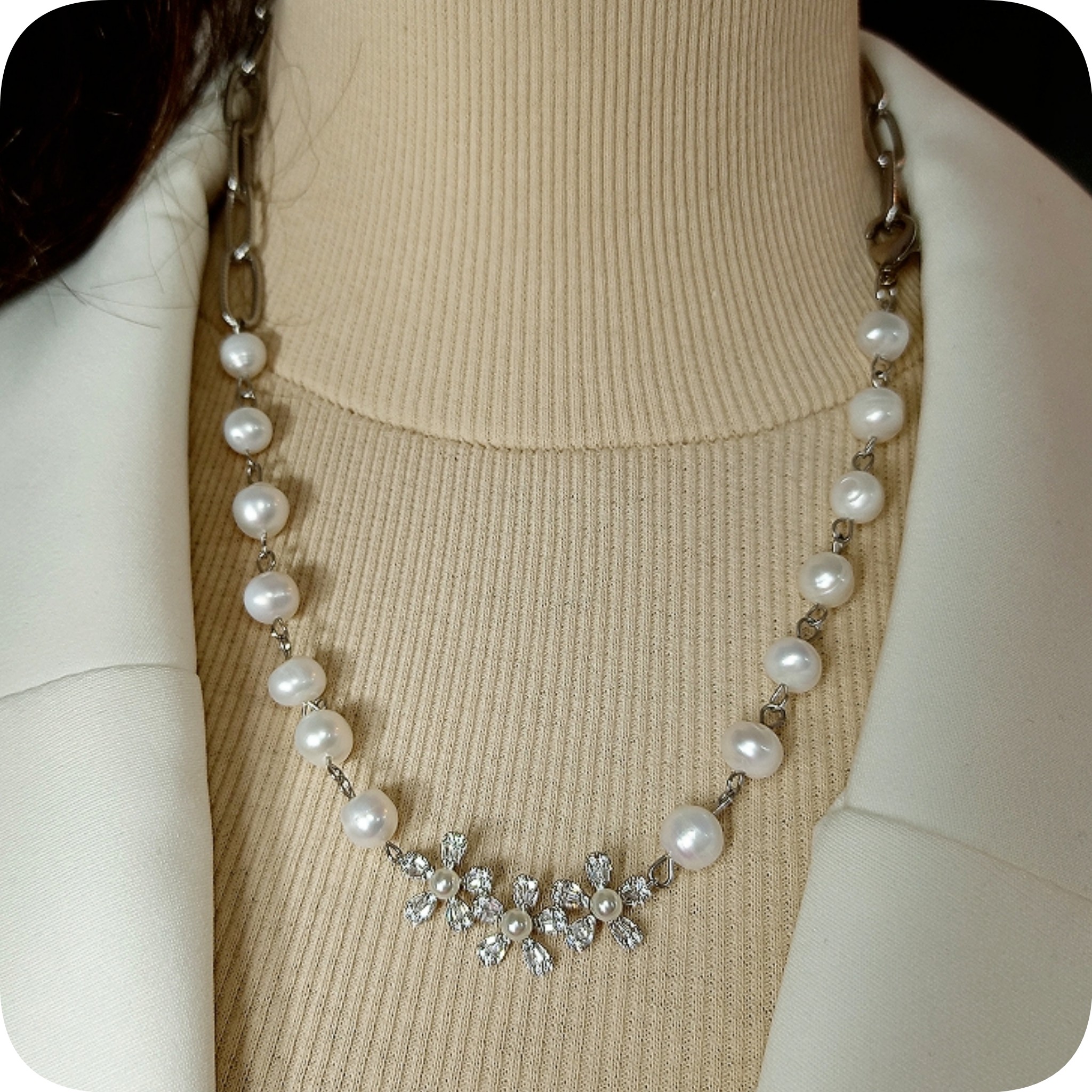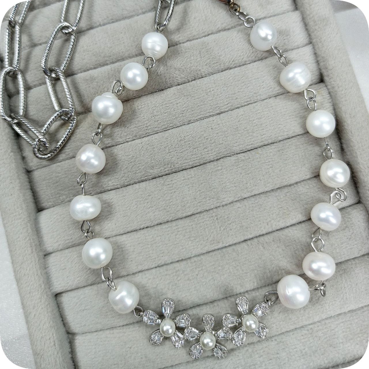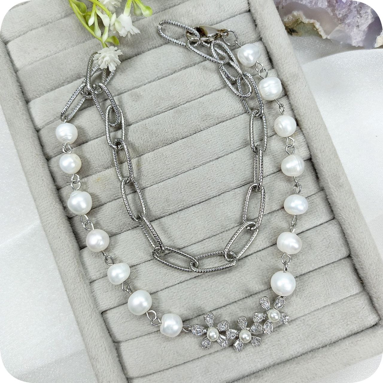 گردنبند مروارید و پلاک سواروسکی