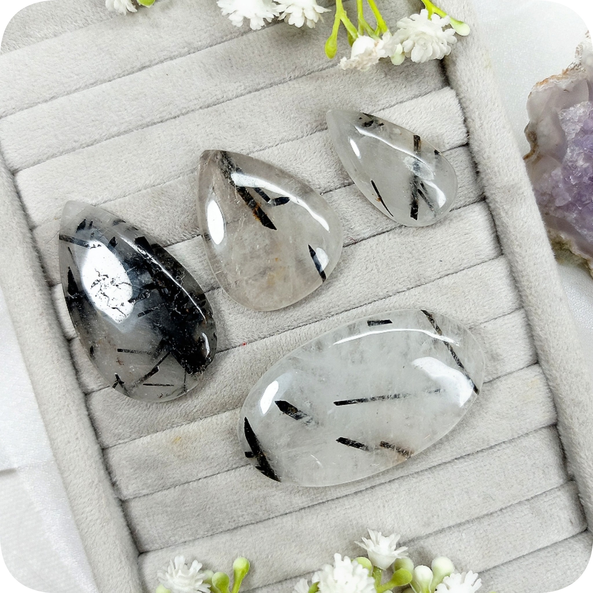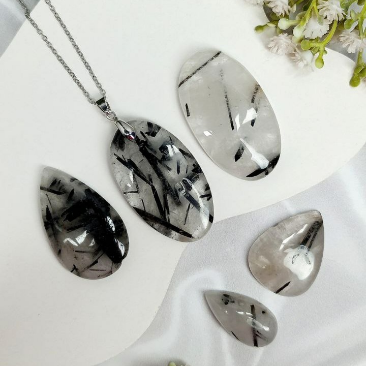 نگین کوارتز تورمالین دار