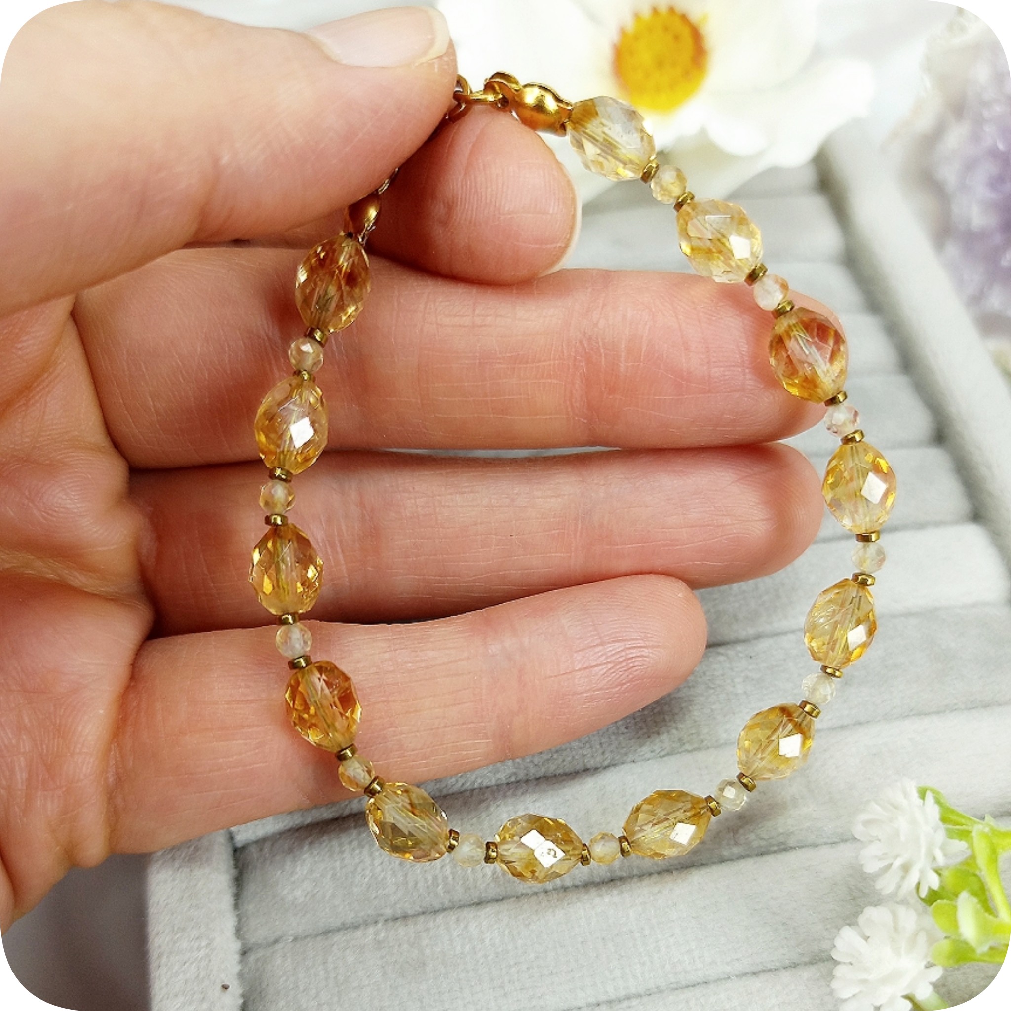 دستبند سیترین تراش گندمی (تراش کامپیوتری)